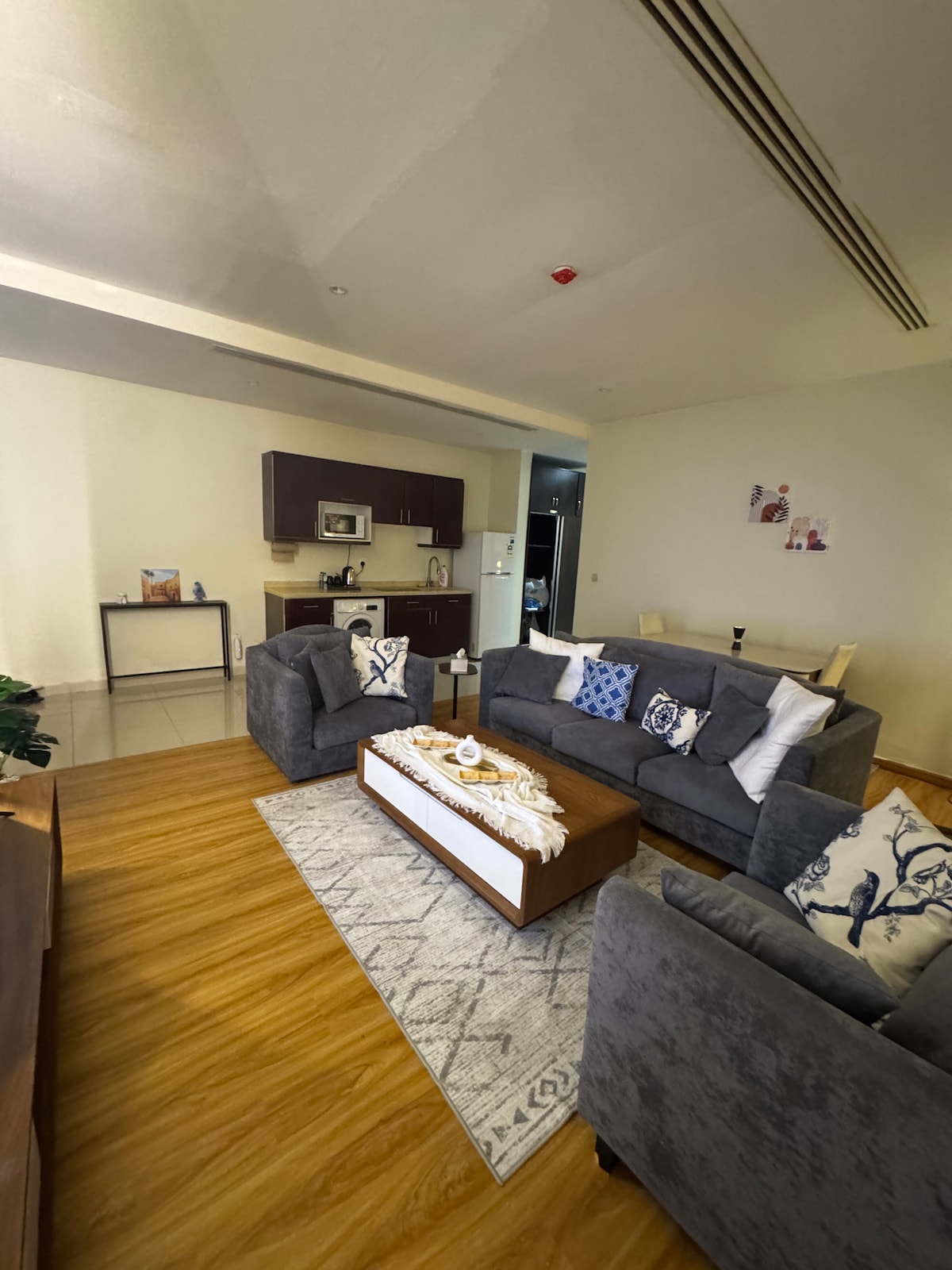 Disfruta de una estancia distintiva en un apartamento moderno en un edificio nuevo en Al Olaya, uno de los vecindarios más vibrantes de Khobar. La ubicación es estratégica y está cerca de todos los servicios: restaurantes, cafeterías, centros comerciales y los principales mercados.