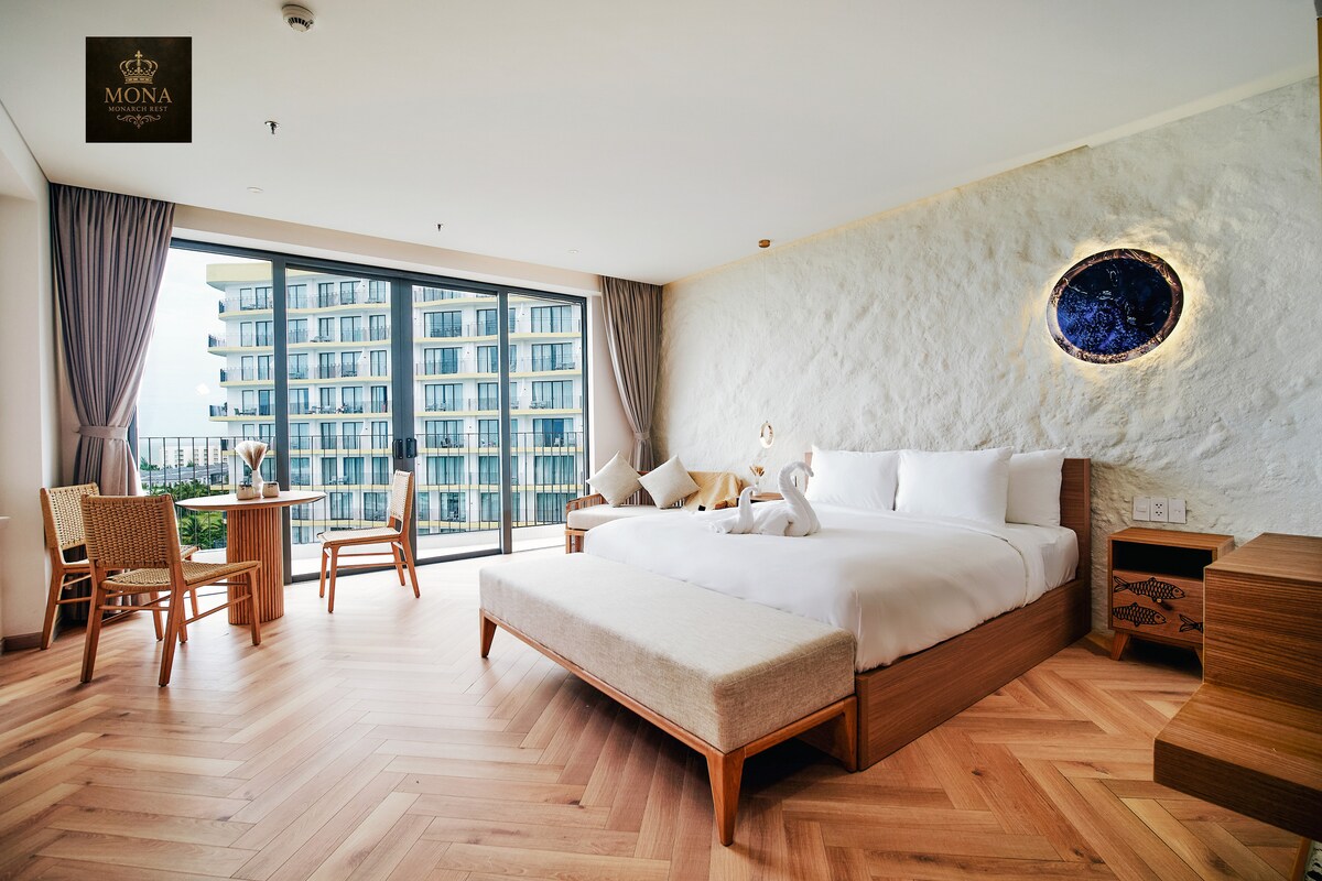 Designed for relaxing getaways and extended stays, our pool & partial sea-view studio is shaped by the ocean lifestyle. Ideal for couples, families, or long-stay guests, this beachfront resort invites you to slow down, enjoy blue views, balance work and rest, and feel right at home. - Special Long-Stay Offers Weekly stays: One-way airport transfer Monthly stays: Free gym access (400m from the resort) or a 70-minute Vietnamese spa treatment