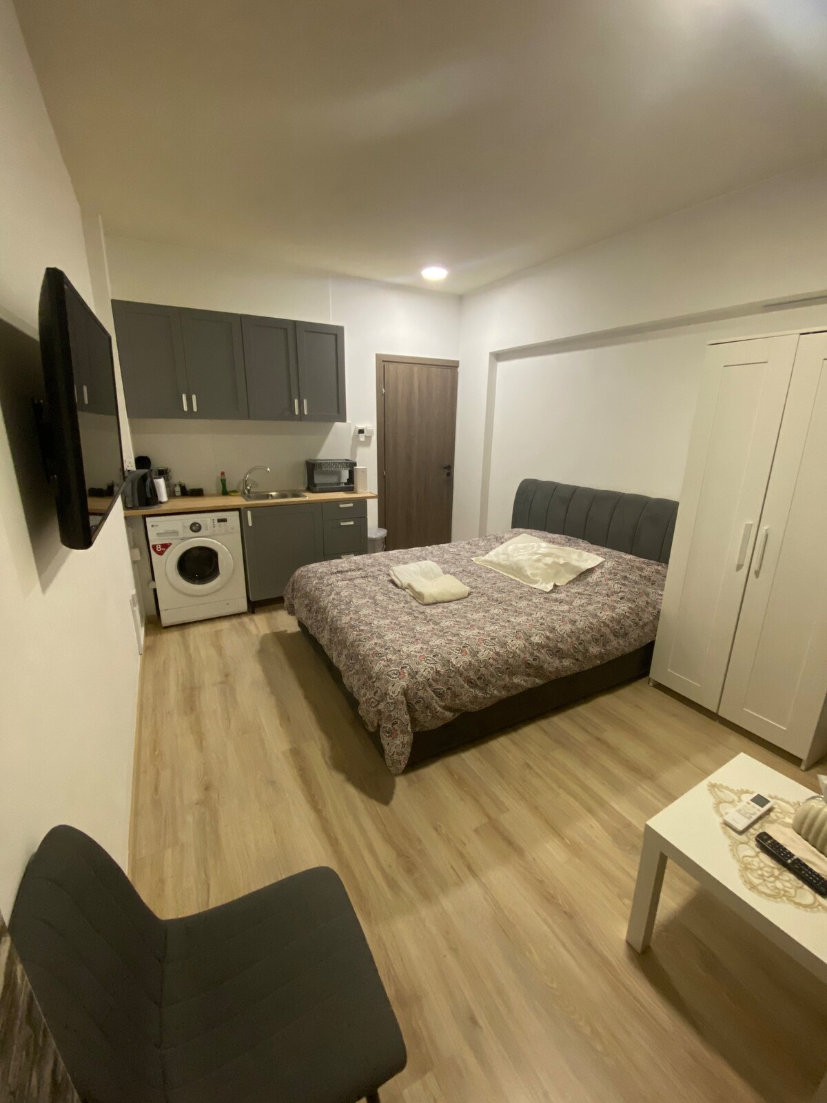 Kick back and relax in this calm, stylish space. Our sunny studio oasis is perfectly located in a quiet residential building in central Larnaca. Enjoy easy access to the Metropolis Mall and the beautiful Larnaca Finikoudes beach, just a 5 minute drive away. The airport is conveniently situated a short 12-minute drive from your doorstep. Our apartment is an ideal base for exploring all that Larnaca offers, with easy access to highways connecting you to Nicosia, Limassol, and Ayia Napa.