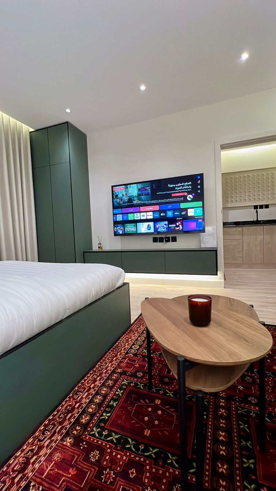 Suite Real 🏨 Ubicación: Distrito de Hittin | Riad 📍 Ubicación privilegiada: cerca de todos los servicios y eventos. 🛍️🎢 Plaza Saad: 3 min Riad Boulevard: 5 minutos. Valle de Laysen: 10 minutos. Distrito financiero: 15 minutos. Parque Riad: 13 min. Aeropuerto: 17 min. Composición de la suite: Habitación + sala de estar + cocina + baño Servicios: Televisor de 85 pulgadas, cómodos sofás. Baño totalmente abastecido: jabón, champú, acondicionador, cepillo de dientes. Iluminación ajustable. Nevera, tetera, microondas.