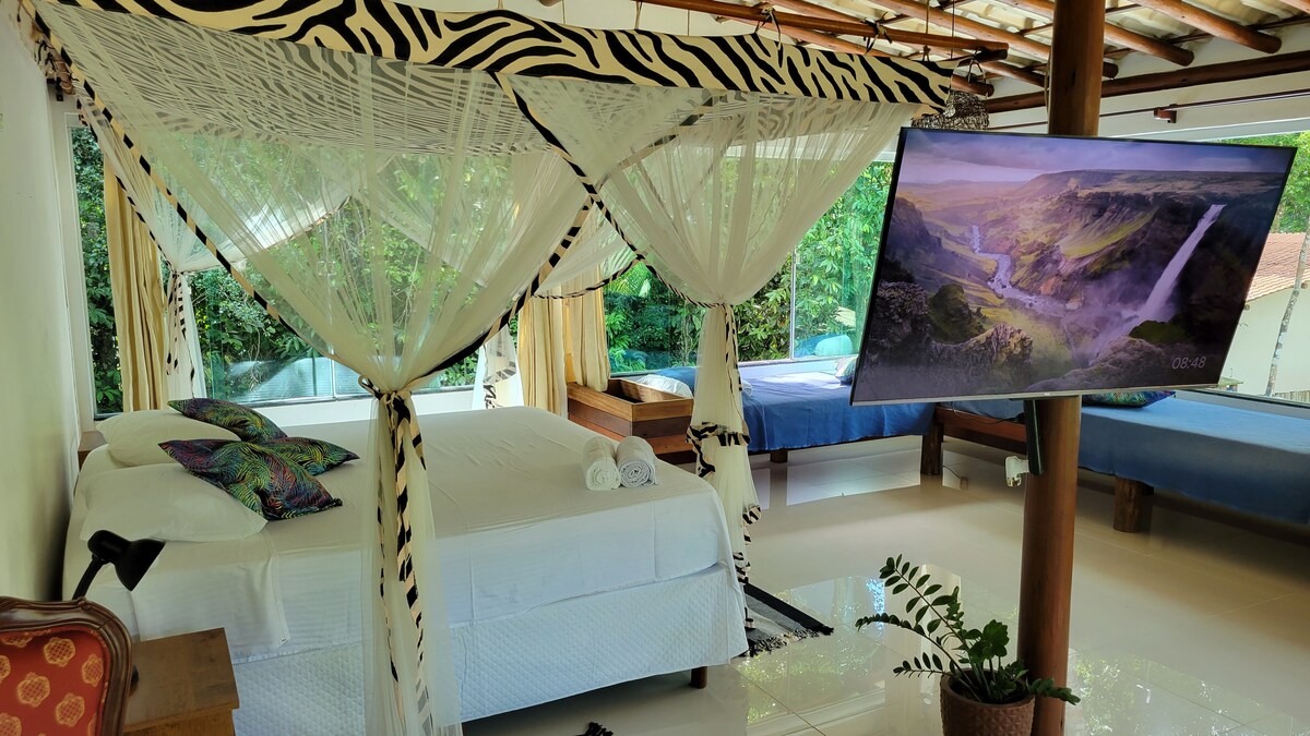 Retiro limpio y tranquilo con piscina privada, cerca de la playa y rodeado de naturaleza. Ubicada en una zona tranquila y verde de Arraial d'Ajuda, Casa Lior combina lo mejor de ambos mundos: la paz y la conexión con la naturaleza, con la comodidad de estar a pocos minutos de playas, restaurantes y mercados locales. El barrio es seguro, con residentes permanentes y seguridad las 24 horas. A pocos minutos en coche, puedes llegar al centro histórico y a las playas más famosas de la región.