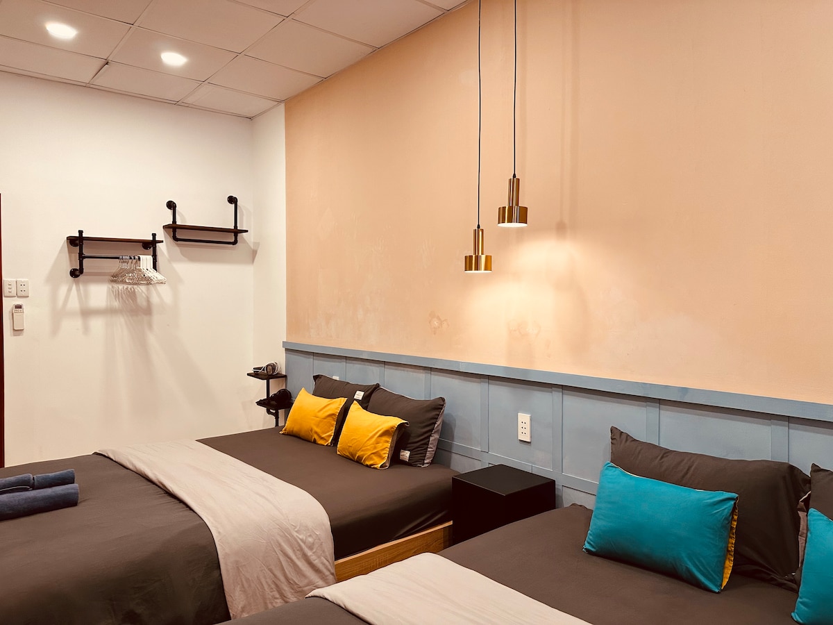 Chỉ cách vài bước chân: - 250m đến chợ Bến Thành - 750m đến phố đi bộ Bùi Viện - 900m đến Dinh Độc Lập - 1km đến Nhà thờ Đức Bà Trải nghiệm nhịp sống sôi động của một khu phố Việt Nam tại căn hộ song lập cổ điển tuyệt đẹp của chúng tôi, nơi kết hợp văn hóa, sự thoải mái và tiện nghi. ✨ Điểm nổi bật: - 2 giường ngủ ấm cúng (tối đa 4 khách) - 1 phòng tắm sạch sẽ với dầu gội, sữa tắm và máy sấy tóc. - Ban công với tầm nhìn ra đường phố Sài Gòn - Nội thất trang nhã mang đậm phong cách Việt Nam