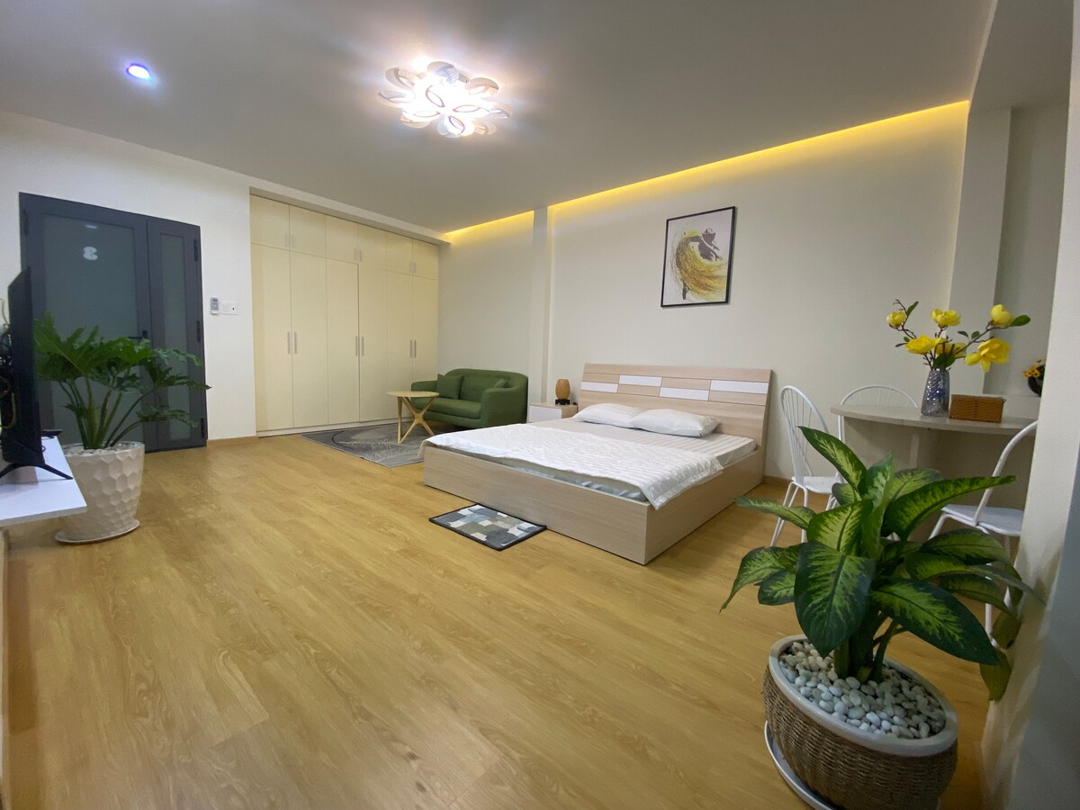 Estudio nuevo y espacioso de 45 m2 con utensilios de cocina, cama tamaño king y baño moderno. Su ocupación es de hasta 4 adultos. Adecuado para viajeros de negocios, parejas o grupos familiares. - Internet rápido y gratuito, televisión, electricidad y agua gratis. - Asistencia al anfitrión las 24 horas, 7 días a la semana. - Servicio de recogida en el aeropuerto (previa solicitud y con cargo). - Excelente ubicación: fácil de conseguir taxi o caminar para llegar a muchos destinos turísticos, oficinas, restaurantes. Su casa tiene buena insonorización y es adecuada para personas a las que les gusta la vida animada de la ciudad.