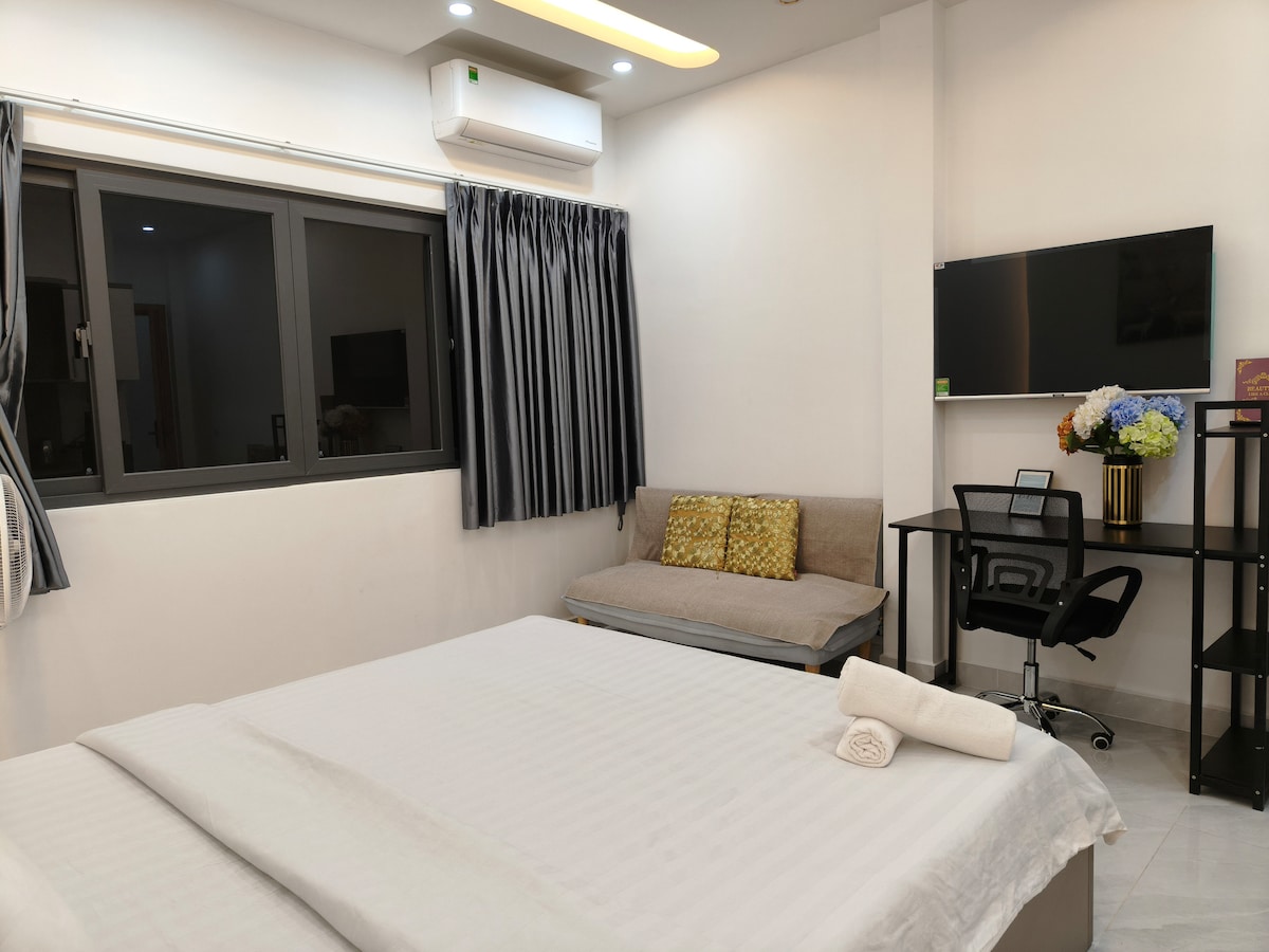 - Un apartamento elegante y único en Mersey Central Saigon Apart'Hotel, miembro de HoLo & Mersey Hospitality. - El GRUPO MÁS GRANDE puede reservar otras habitaciones para alojarse aquí juntos. - Muy cerca del mercado de Ben Thanh, Nguyen Hue, Pham Ngu Lao y el área de Bui Vien. - Estudio nuevoy elegante. - Rodeada de todas las atracciones turísticas - Cocina privada, baño privado y balcón privado. - No se permite fumar. No se permiten mascotas. - Facturas de depósito y de servicios públicos para estancias largas que se informarán al momento de hacer la consulta.