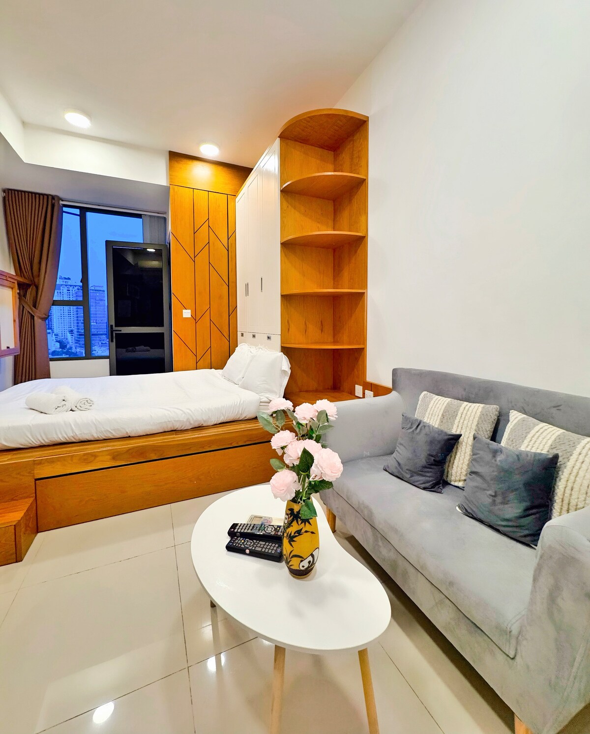 Chill studio 40m2 in A office building. The apartment is in a great location in District 7 (near District 4 and District 1) - Close to everything - 2 minutes to Lotte Mart - 5 minutes - 7 minutes to SC Vivo City, Crescent Mall - 10 minutes to Bui Vien Str., (where there are many bars, pubs) - 3-5 minutes walk to pharmacies, restaurants, markets and local shopping areas around. *Our studio has a full kitchen, utensils. A place like your own home. *Peaceful, clean and fragrant.