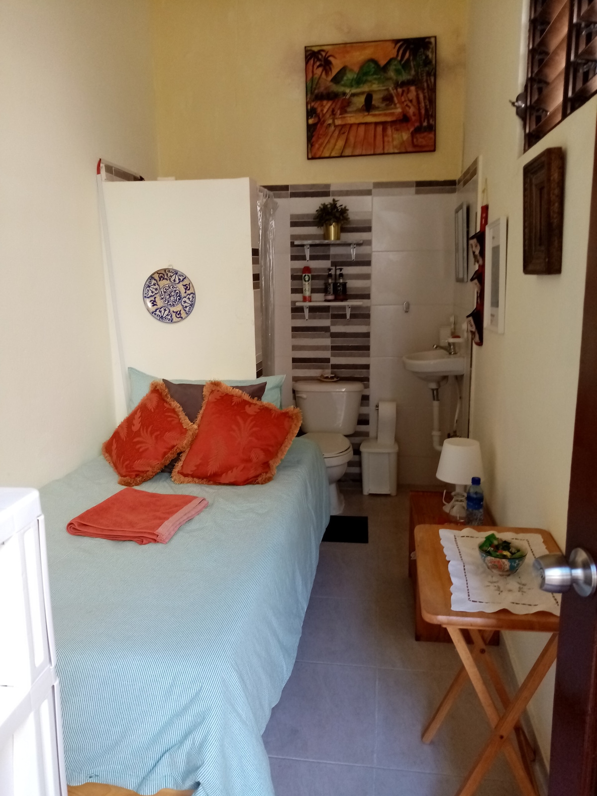 Walk around the bustle of the oldest city of the Americas filled with museums, galleries, restaurants and bars. Then escape street noise by staying at the Paseo Colonial - a hidden green treasure perfect to relax. Apartment 12 is a bright 1 bedroom apartment fully equipped to ensure you enjoy your stay. It boasts a kitchen with items to enjoy your cooking, a living room area, and a separate large (king bed )room with shower. We offer cleaning. We look forward to welcoming you!