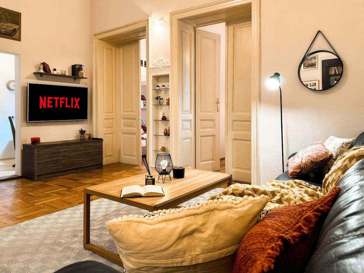 📍UBICACIÓN, UBICACIÓN, UBICACIÓN: a solo 50 m de Knez Mihailova, en el corazón del casco antiguo de Belgrado. 💛 DISEÑO Y COMODIDAD: donde la tradición se une al estilo moderno y la energía urbana, en un espacioso apartamento de 65 m². 🏛 EDIFICIO HISTÓRICO: construido en 1875, con techos de 4 m de altura y grandes ventanales. AMBIENTE 🌆 URBANO: disfruta de tu café en el balcón sobre la calle Vuka Karadžića, rodeado de restaurantes y cafés. 🤝 HOSPITALIDAD: Estamos cerca y siempre dispuestos a ayudarte para que puedas disfrutar de tu estancia sin preocupaciones.