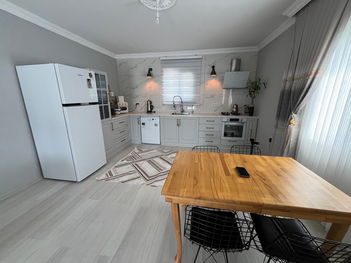 Odada çift kişilik yatak salonda 2 adet çekyat mevcut. 4 kişi duruma göre 5. kişi ile rahatlıkla konaklayabilirsiniz. Toplu ulaşım önünden geçiyor. 1.2 km mesafe mevcut plaj ile arasında. Market hemen altında ve süpermarketler 50 mt sonra sırayla mevcut. 7/24 ulaşabilir ihtiyaçlarınızda destek alabileceksiniz. Balkondan deniz manzarasi mevcut.