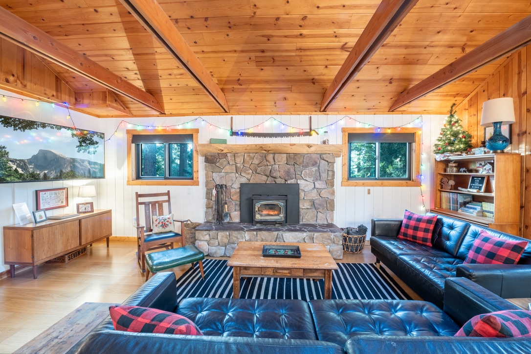 Disfruta de una escapada al aire fresco y limpio de la montaña y de un estilo de vida relajado: Mountain Time. Acurrúcate frente a la cálida y acogedora chimenea, disfruta de cócteles en la gran terraza y aprovecha las interminables actividades al aire libre. Este santuario de montaña de tres dormitorios y dos baños se encuentra justo encima del río Stanislaus en las montañas de Sierra Nevada. Elevación de 5000 pies. La cabaña está a pocos pasos del puente Old Strawberry y de varios senderos forestales.