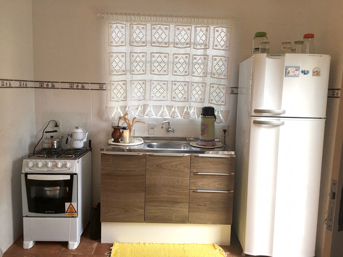 Lugar exuberante, acogedor y tranquilo al pie de la sierra gaucha. Ideal para parejas y familias que buscan tranquilidad y contacto con la naturaleza. La casa de huéspedes está en la propiedad de la residencia del anfitrión. Cuenta con una cocina completa, con utensilios, Air Fryer, ollas, licuadora, estufa a leña, estufa, nevera, cafetera, hornos, tostadora, sandwichera, máquina de hielo. Gran patio con cancha de voleibol, barbacoas al aire libre, quiosco, terraza con piscina y vistas a la ciudad.