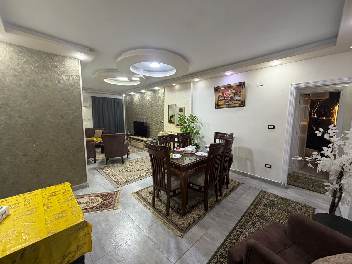 Luxury 4BR apartment in Dokki with 3 bathrooms, 8 premium beds, 2 dining tables, large terrace & garden view. All rooms are fully furnished with wardrobes, premium linens, orthopedic pillows, and modern décor. Air-conditioned bedrooms ensure comfort. The building offers 24/7 security, CCTV cameras, and 2 elevators. Modern kitchen with full appliances, and spacious, elegantly furnished living room. Close to tourist attractions, metro stations, and all public transportation. Luxury Stay in Dokki