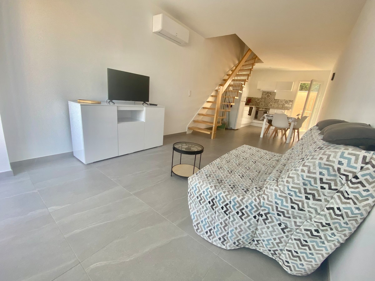 Hermoso estudio independiente en planta baja, de 27 m2 en Maurin, barrio de Lattes. Bien equipado y con aire acondicionado, con su propia terraza. Por razones de seguridad, no aceptamos niños menores de 3 años y nuestros amigos las mascotas tampoco porque tenemos gatos que se pasean libremente. Piscina de 6mx3m para compartir con nosotros. No es posible recargar un vehículo eléctrico ni aparcar dentro de nuestra propiedad. 6 noches mínimo en julio y agosto. Leer la guía de llegada.