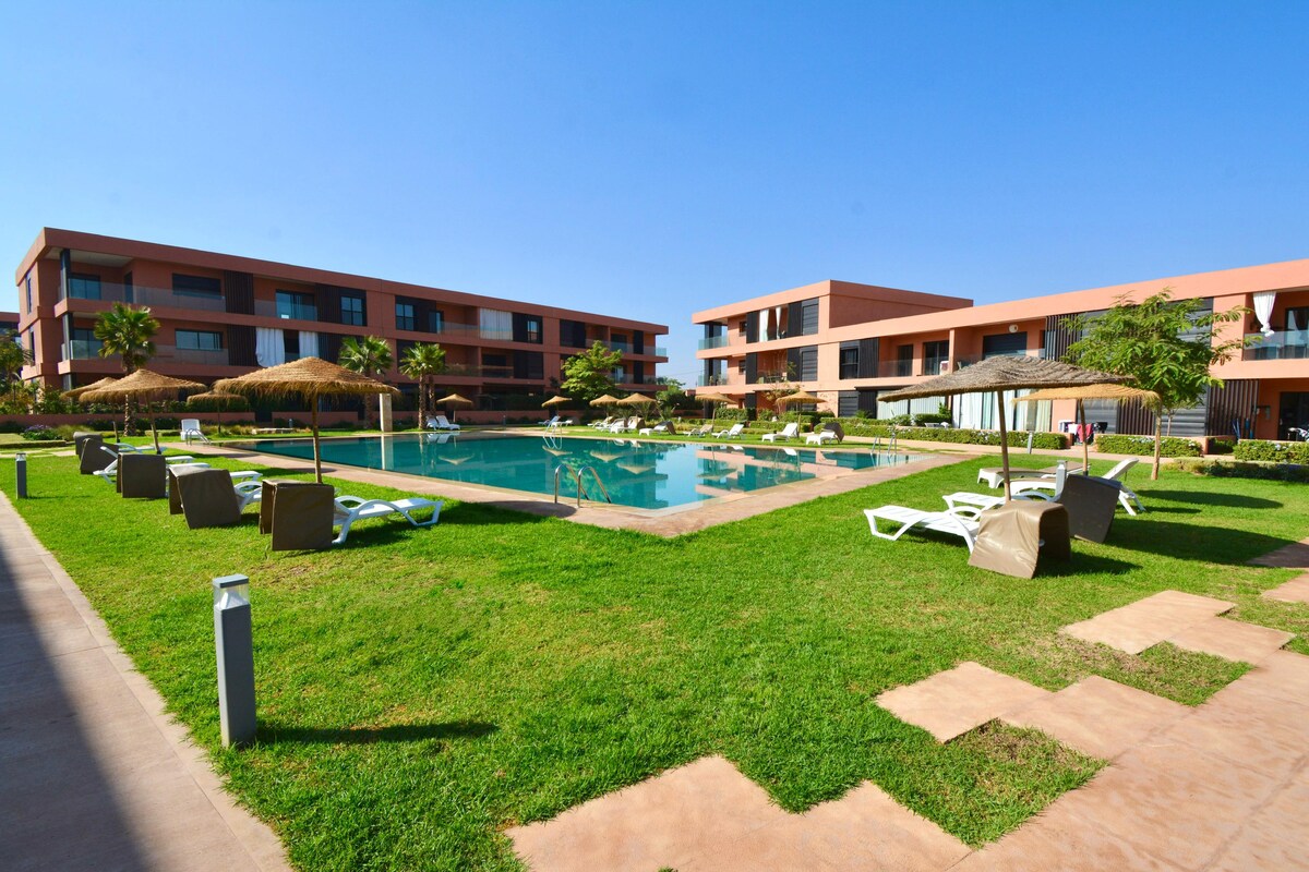 Disfruta de una estancia de lujo en este hermoso apartamento de 2 dormitorios y 2 baños situado en la famosa Residencia Noria, con enormes piscinas y un campo de golf. Está estratégicamente situado a 7 minutos del aeropuerto y a 7 minutos del centro de la ciudad de Marrakech. Disfruta de los hermosos jardines y la calma mientras estás cerca del centro de la ciudad. Será un placer darte la bienvenida a este hermoso apartamento y residencia.