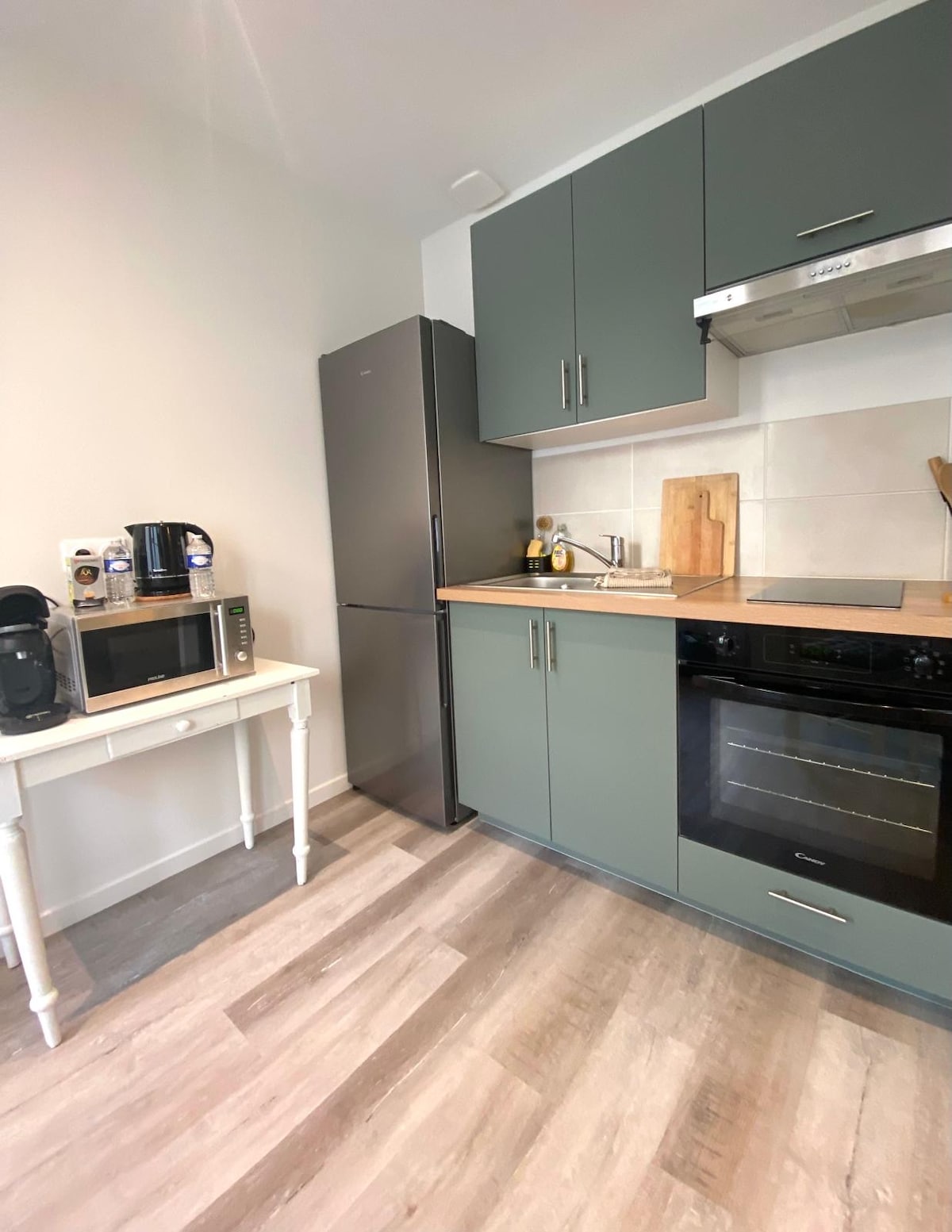 Loft en el centro de Rennes. Con una ubicación ideal en el corazón de la ciudad, ¡se puede ir andando a todas partes! A 2 minutos de las tiendas de artesanía de la rue Saint-Hélier, a 3 minutos de la estación de tren, a 5 minutos de Les Halles, de los bares y restaurantes de Rennes. Loft amueblado con buen gusto, gran sala de estar en medio nivel con hermosa altura del techo. Cocina equipada con electrodomésticos nuevos. Gran cuarto de baño con bañera. 2 amplios dormitorios con camas de 2 plazas, uno de ellos con escritorio.