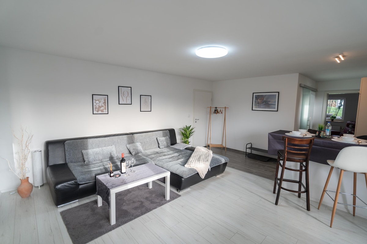 Herzlich Willkommen in unserer neuen Ferienwohnung. Sie wird Dich mit ihrer modernen und stilvollen, sowie auch geräumigen und gut ausgestatteten und komfortablen Einrichtung überzeugen. Wir haben uns größte Mühe gegeben Dir den bestmöglichen Komfort bieten zu können. Die Wohnung liegt sehr ruhig mit vielen spazier Möglichkeiten mit einigen Spielplätzen für die kleinen Gäste. Genauso bist du schnell zu Fuß in der Innenstadt so wie mit dem Stadtbus der direkt am Haus hält.