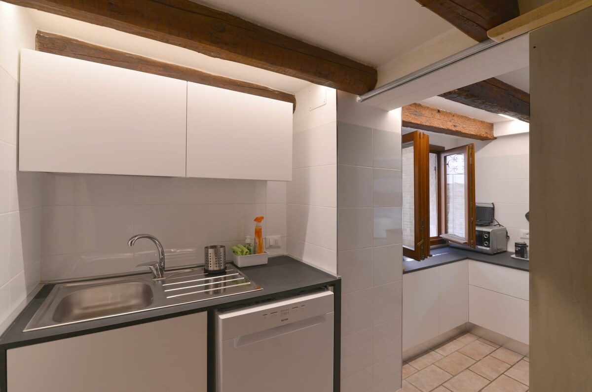 Espléndido apartamento situado en el primer piso del palacio Casa dei Pittori, Ca' Guardi te atrapa inmediatamente y te abraza con su calidez y ambiente acogedor. (El apartamento está decorado con vigas de madera a la vista y suelos de mármol veneciano). La terraza de mármol blanco da a uno de los canales más animados y característicos de Venecia, de hecho, te permite observar cómo se desarrolla la vida de la ciudad con la más absoluta paz y reserva, donde puedes cenar al aire libre con total comodidad o simplemente leer un libro con los murmullos del canal de abajo. Aire acondicionado. Tiene capacidad para 4 personas en un espacio amplio y luminoso y, por lo tanto, es ideal para familias con niños o dos parejas o amigos que decidan compartir la experiencia veneciana de una manera realmente memorable. Servicios: Internet wifi, cocina completa, aire acondicionado, horno, caja fuerte, lavadora, lavavajillas, televisor LCD de 32 pulgadas con reproductor de DVD, secador de pelo.