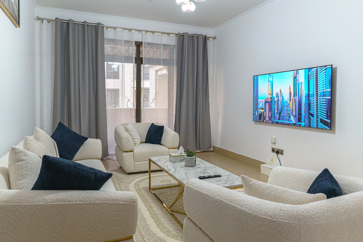 Bienvenido a L'Appartement, un lujoso apartamento de tres dormitorios en el centro de Dubái. Este espacioso refugio presenta un sofisticado estilo parisino contemporáneo y un ambiente de hotel de cinco estrellas. Cada dormitorio tiene un baño privado y un televisor dedicado para mayor privacidad. Disfruta de servicios como gimnasio, sauna y piscina, además de seguridad 24/7. Hay supermercados, barberías, salones de belleza y cafeterías cerca. El centro comercial Dubai Mall está a solo cinco minutos, por lo que L'Appartement es ideal tanto para estancias cortas como largas.