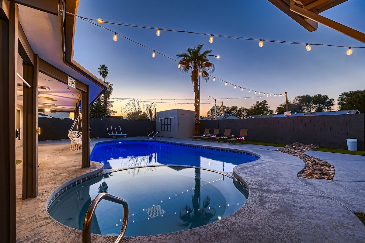 Casa recién renovada en Las Vegas con un oasis de piscina tipo resort, jardines con chimenea personalizada, nuevo y moderno jacuzzi Clearwater con más de 100 chorros y características de agua para que te relajes y disfrutes, una zona de patio con barbacoa y cocina al aire libre y una divertida zona de juegos al aire libre. Esta casa unifamiliar con casita se encuentra a pocos minutos de aventuras al aire libre, emoción en la Franja y amadas atracciones locales. Disfruta de un estilo bohemio moderno y relajado con toques cuidadosamente pensados para garantizar una estancia cómoda e inolvidable.