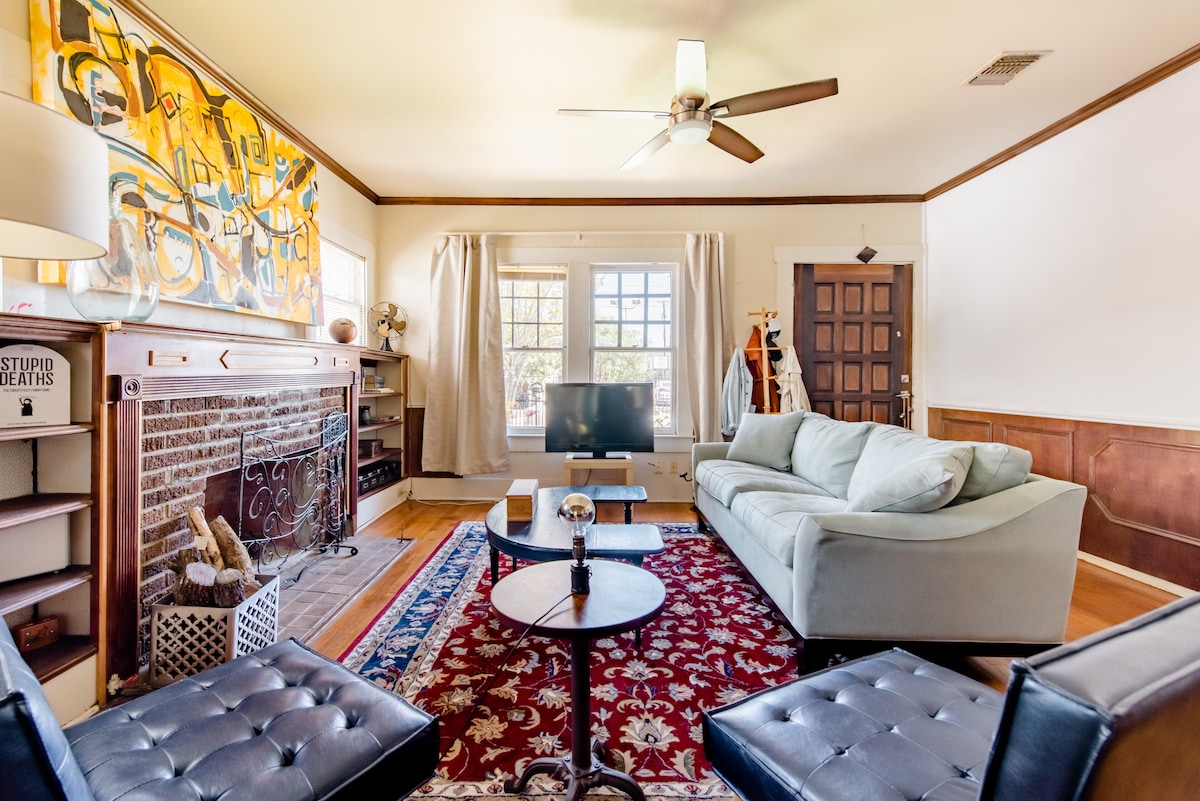 Detalles originales en una histórica casa de King William en el Paseo del Río de San Antonio. Escondida en la «mejor calle de San Antonio», esta tranquila calle residencial es el corazón artístico de la ciudad. Camina hasta uno de los muchos restaurantes para disfrutar de una comida increíble, incluidos algunos de los mejores y más populares lugares de San Antonio. Disfruta de paseos artísticos el primer viernes o pasea por el Paseo del Río. Perfecto para aquellos que quieran experimentar una hermosa arquitectura histórica con servicios modernos fiables.