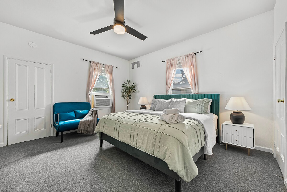 Welcome to your cozy retreat in the heart of Downtown San Jose! This stylish 2-bedroom apartment is perfect for business travelers, traveling medical professionals, couples, solo adventurers, and interns! -> Very close to SJ Airport, SF Convention Center, SAP Center, SJ Downtown... -> Self-Check in with code -> Free private on-site parking spot in the gated garage -> Central A/C and heater -> In-unit washer and dryer -> High-Speed Wifi -> Comfortable King size bed -> Elevator in the building