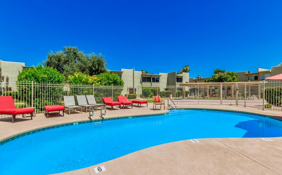 ¡Ubicación, UBICACIÓN! Estarás en el corazón de Scottsdale en esta remodelación de alta gama. Disfruta de este entorno tipo resort donde tu patio privado se abre directamente a la zona de la piscina climatizada. La comunidad tranquila y familiar está enfrente del centro comercial Fashion Square y a poca distancia a pie de la mayoría de las atracciones del casco antiguo. La unidad mejorada viene con café y todos los elementos esenciales. Los propietarios son receptivos y serviciales y están encantados de ayudarte a que tus vacaciones sean perfectas. Internet gratuito de 250 Mbps. Licencia STR de Scottsdale 2024620