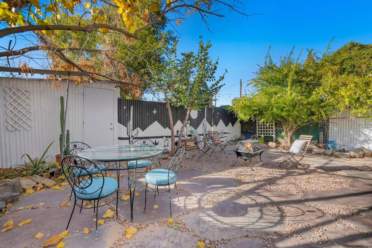Propiedad recientemente remodelada en la histórica 4th Ave/centro de Tucson. Situado a tiro de piedra del tranvía y a poca distancia a pie de la Universidad de Arizona, tiendas, vida nocturna, bares y restaurantes de moda. Disfruta de un plano de planta amplio y luminoso con techos altos. Cocina grande con todos los elementos esenciales para estancias largas y cortas. Duerme bien en un enorme dormitorio principal con una cama tamaño king supercómoda. ¡Decorado con buen gusto con una cama Murphy que los huéspedes adicionales pueden disfrutar! ¡Ubicación de moda que definitivamente no decepcionará!