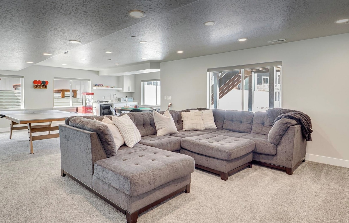 Discover an idyllic Utah retreat, perfectly situated near ski resorts & trailheads. Indulge in a private 2,500 sq. ft. basement apartment with a separate entrance, featuring 2 bedrooms, 1 Jack-n-Jill Bath, a Kitchenette, a Gym, a Theatre, and awe-inspiring postcard views. Bedroom #1 offers a king bed, while Bedroom #2 features a king bed and 2 adjustable twin beds that convert to King. Enjoy SmartTVs in every room, unwind in the gym or theatre, and cozy up by the fireplace for pure relaxation.