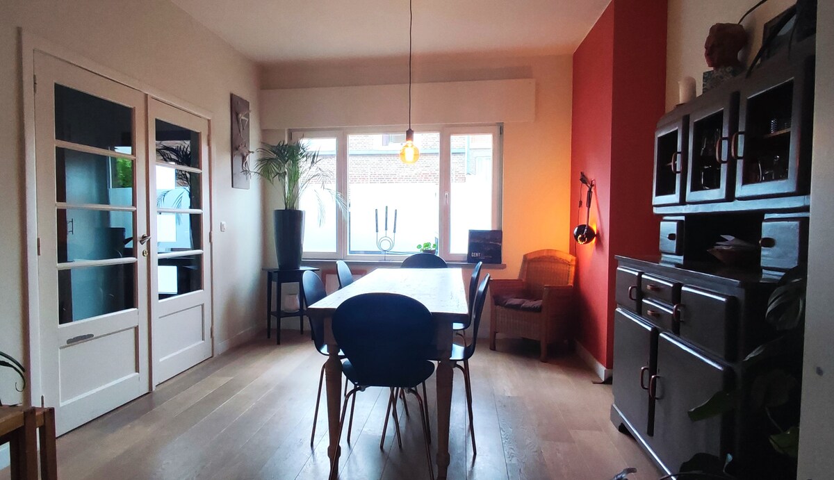 Sunny Green es una pequeña casa situada en un barrio tranquilo de Gante. (¡A 4 kilómetros del centro de la ciudad!) Check-in los sábados y domingos a las 15:00 Check-in de lunes a viernes a partir de las 18:00. Salida a las 12:00 del día siguiente. El día de su llegada, ya puede utilizar nuestro aparcamiento, bicicletas y entrega de equipaje a partir de las 12:00. Sábado y domingo check-in: 15:00 check-out a las 11:00