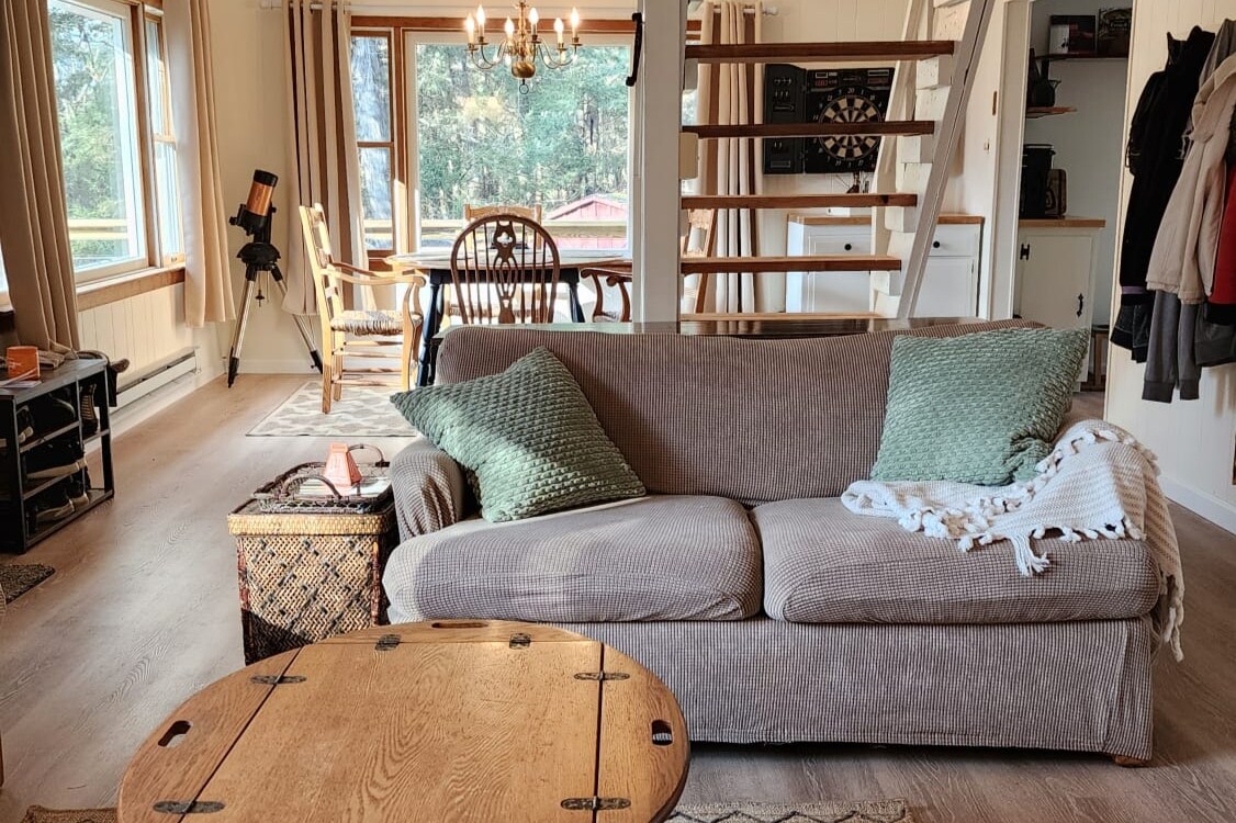 Ubicado en lo alto de los árboles, Gingerbread es un chalet suizo de los años 50 que se encuentra en 4 acres. Esta es la casa por la que todo el mundo reduce la velocidad, señala y dice: «esa es la casa que querría en Upstate». Bueno... ya está cogida. Pero estoy muy feliz de daros la bienvenida como huéspedes durante un breve periodo de tiempo. Gingerbread viene con todos los pequeños toques que la hacen sentir como el hogar perfecto para una semana, un fin de semana o el tiempo que puedas escapar de tu vida normal.
