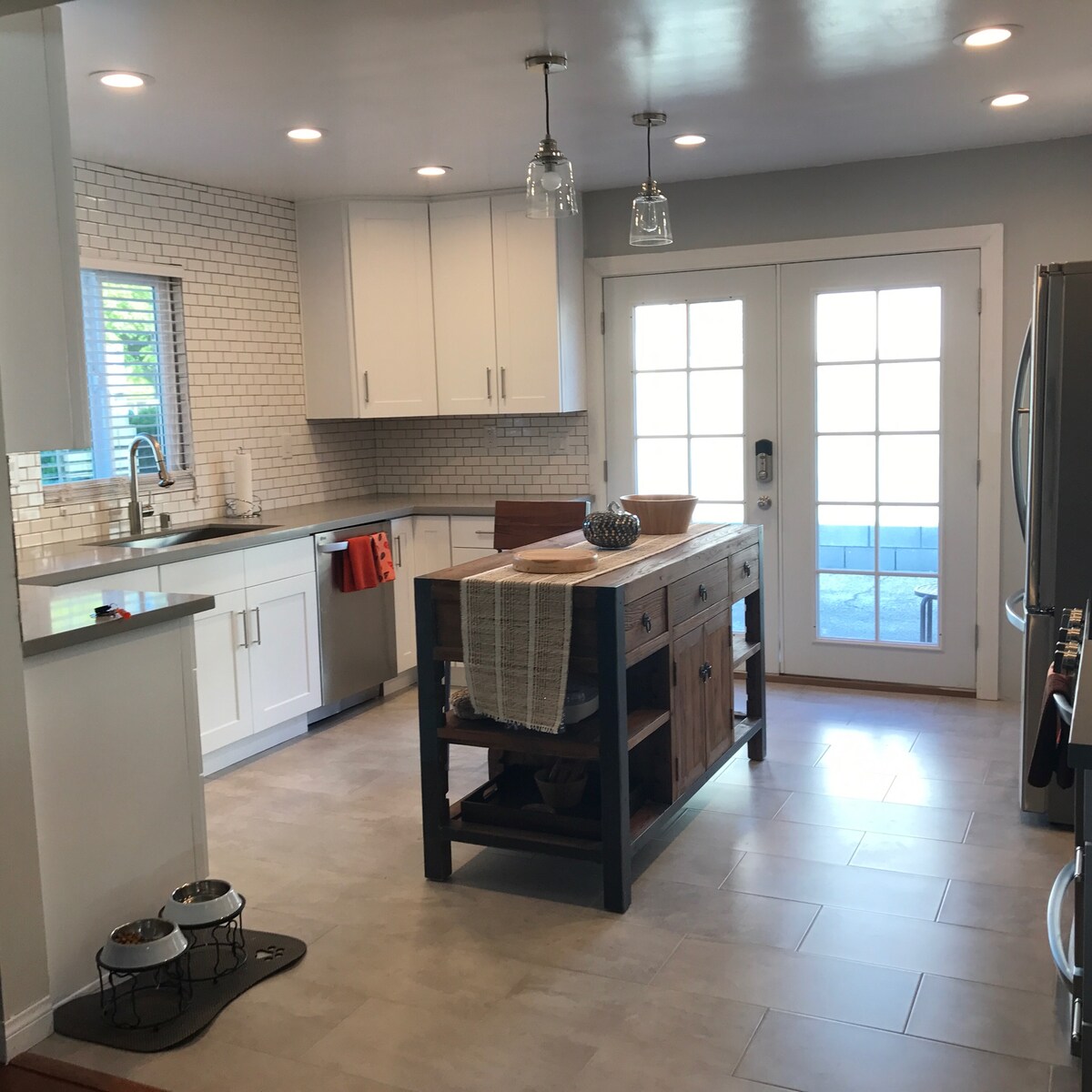 Acogedora casa en la ciudad de Monrovia. TV grande de 70 pulgadas con cómodo sofá en la sala de estar y bonita cocina. 2 baños, 1 con bañera pequeña y 1 con ducha a ras de suelo. Termostato Nest para controlar la calefacción y la refrigeración. Ventilador de techo en todas las habitaciones y reguladores de intensidad en todas las habitaciones para la iluminación ambiental. 2 dormitorios con cómodas camas, TV instalados en el dormitorio de invitados y en la sala de estar.