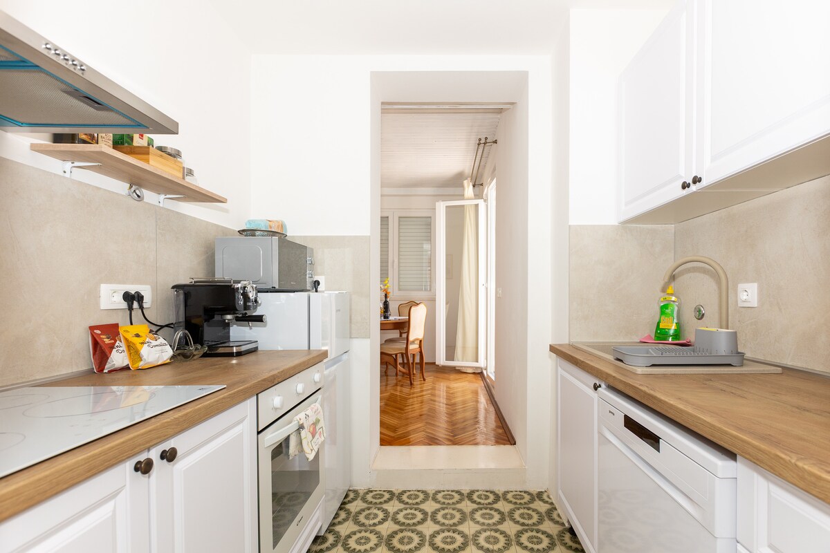 Un apartamento a estrenar ubicado en el corazón de Lapad. Relájate en este cómodo y bellamente decorado alojamiento con una gran terraza donde puedes disfrutar a cualquier hora del día. El departamento está ubicado en el pequeño edificio, 35 m2; un dormitorio con una cama doble, un inodoro y una sala de estar con cocina. Todas las playas se encuentran a 10 minutos a pie, así como el paseo marítimo de Uvala Lapad con numerosos restaurantes y bares. Estacionamiento privado disponible con cargador para autos eléctricos.