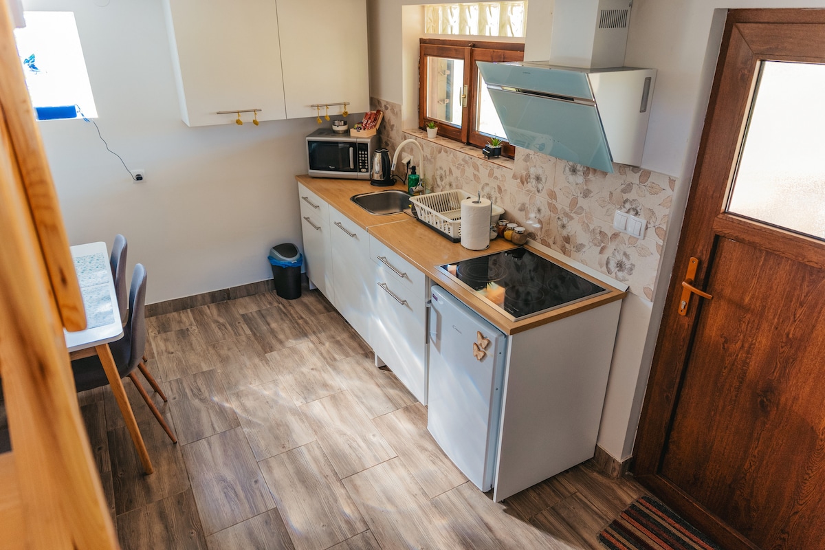 Esta pequeña casa de madera está en un pequeño pueblo de Poljanak a sólo 8 km de la entrada principal del Parque Nacional de los Lagos de Plitvice (Entrada 1). El apartamento es adecuado en una zona tranquila y tranquila y en la naturaleza pura. Puedes pasar tiempo descansando en el gran jardín donde puedes disfrutar de una bonita vista del cañón del río Korana, las montañas y las colinas. El departamento está bien equipado, incluyendo todo lo necesario para tu estadía. El interior está cubierto principalmente de madera, ya que todo rodea el departamento.