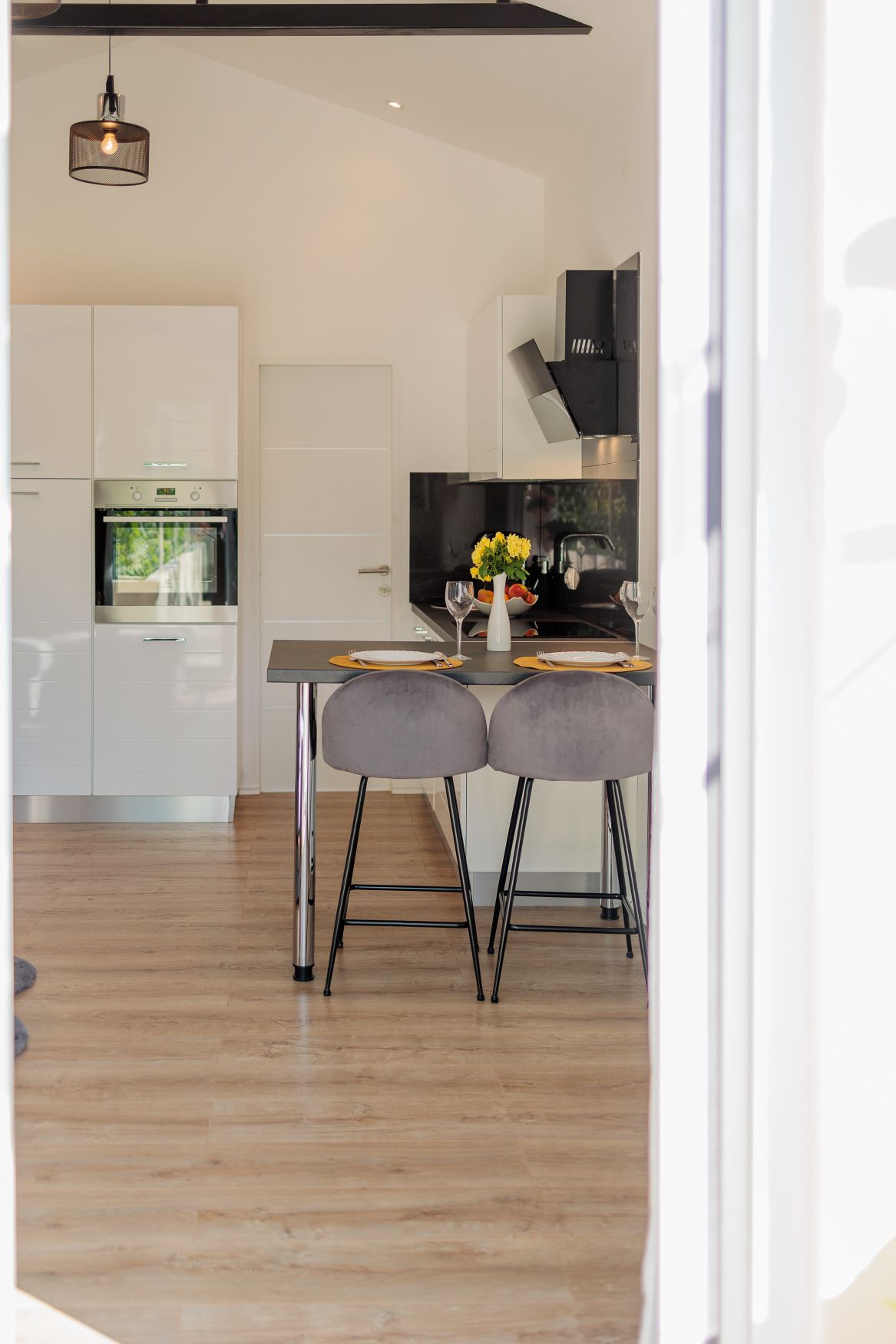Apartamento tipo estudio de lujo con cocina, baño, TV y aire acondicionado ideal para dos personas. Aparcamiento gratuito incluido. La estación de autobuses, el puerto de Gaženica y el centro de la ciudad están a 5 minutos en coche. La playa se encuentra a 300 metros del apartamento.