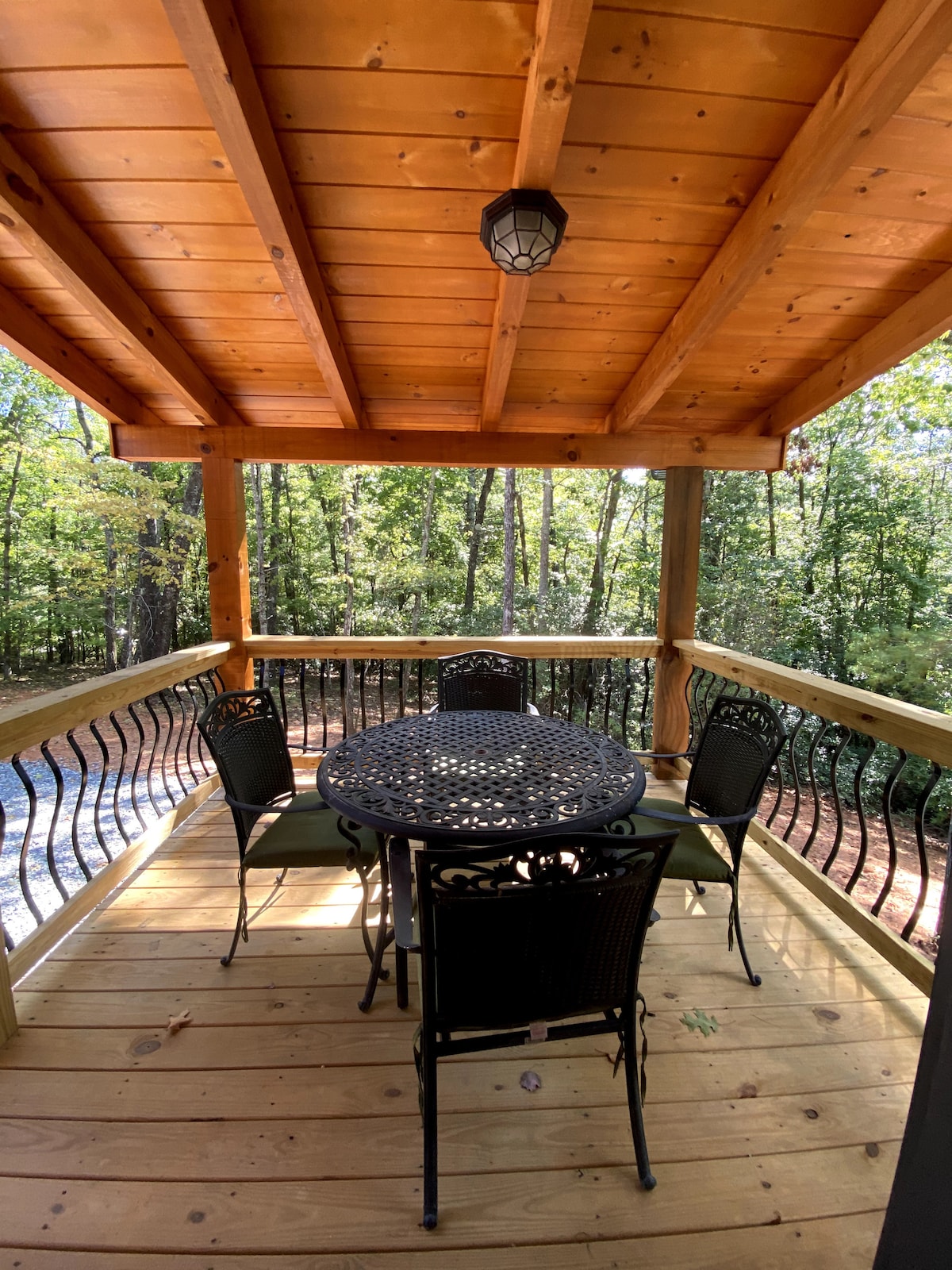 I designed and built this custom shipping container getaway for you to have a unique place to stay, relax and enjoy yourself in the foothills of the North Georgia mountains. This is as close to nature as you can get (without having to go into it, lol). Nestled in a secluded spot minutes away from wineries, tons of outdoor activities and downtown Dahlonega, you'll have something to do for your entire stay! So come relax by the fire pit, in the hot tub, or somewhere on the 1000+ sq. ft. decks.