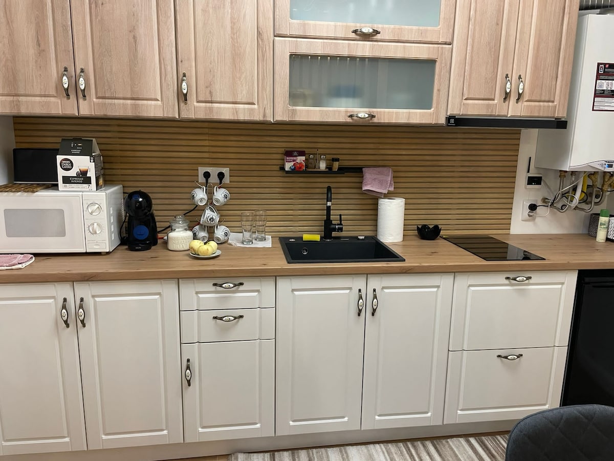 Alojamiento nuevo, comodidades modernas Alquilo un apartamento de espacio abierto de 32 metros cuadrados , bloque nuevo, zona tranquila,equipado y equipado con todo lo nuevo , para una estancia agradable y cómoda. El departamento está terminado de forma moderna El departamento está en la planta baja. Bloquea con ascensor. *Cama matrimonial, ropa de cama fresca, toallas, gel de ducha. *TV, wifi gratuito + Netflix *Cafetera+ café, platos *Microondas,tostador *La placa de inducción *Refrigerador. *Lavadora Calefacción por suelo radiante Aparcamiento gratuito Salida a las 11:00 a. m.