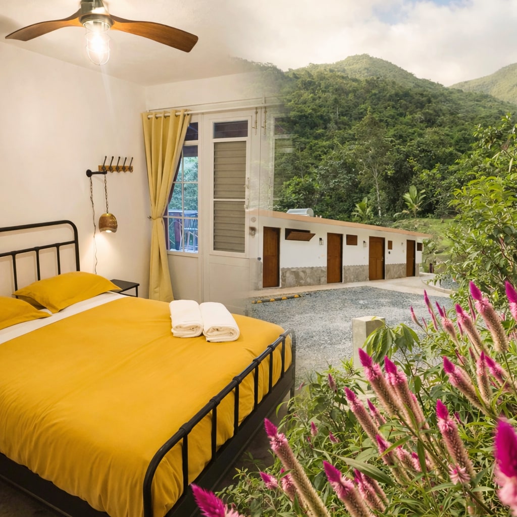 Welcome to Finca Ki’ B&B. Your room is located in our agroforestry farm, located in the southern skirt of El Yunque Rainforest. The rooms have private terrace access with a stunning river view. Sway in your hammock, enjoying the sounds of nature. Our finca is a peaceful retreat for a calm & simple escape to rest, reconnect and slow down. Thoughtfully designed rooms, natural surroundings, and a relaxed atmosphere invite you to experience nature, calm, and connection in an authentic rural setting.