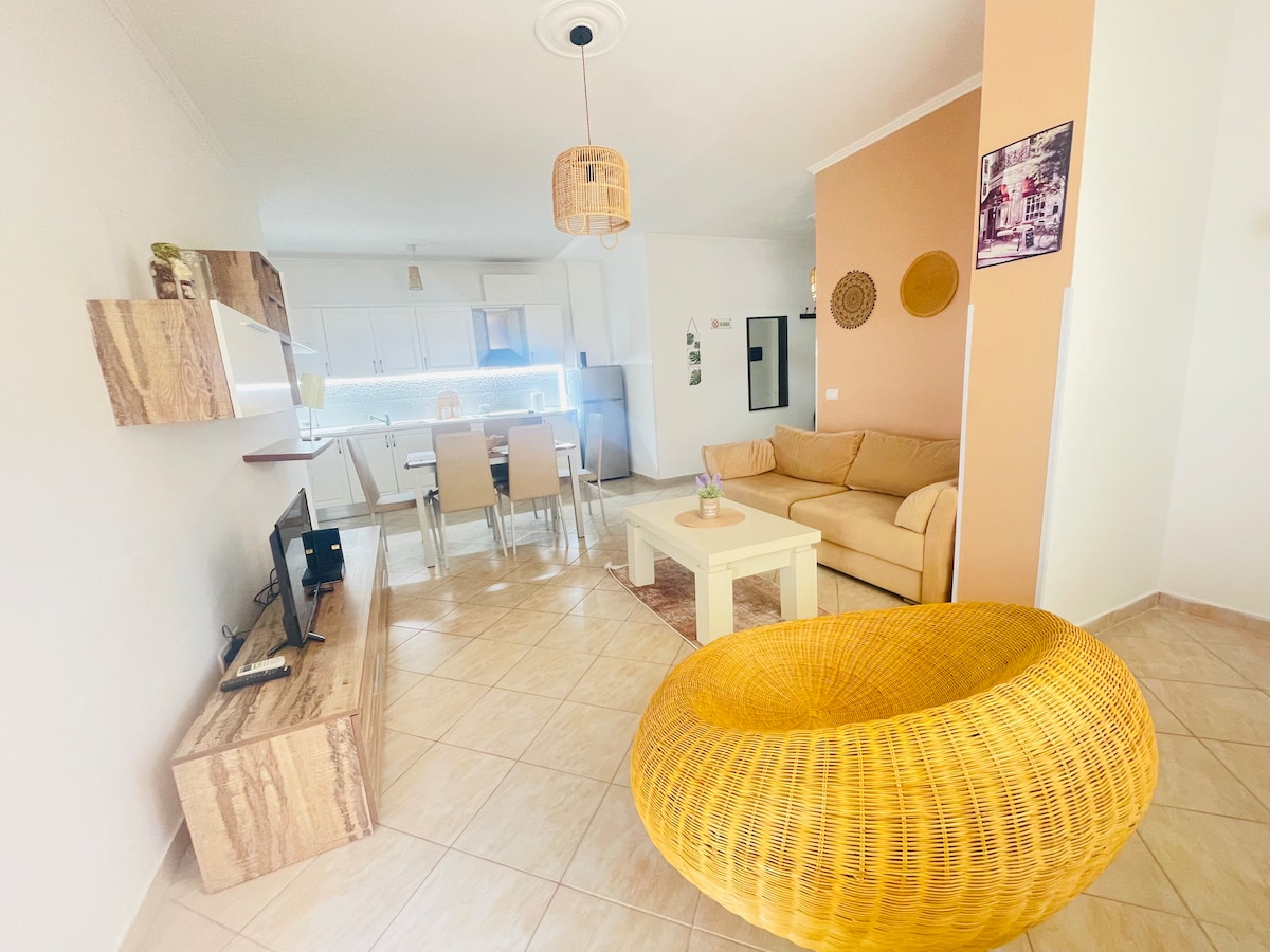 Situado en la famosa Bahía/Playa de Golemi, este es un apartamento muy organizado y limpio. Tiene una ubicación perfecta con acceso a la playa a solo 2 minutos a pie. El departamento tiene capacidad para una familia de hasta 6 personas. ¡Fabricante de expresos y lavadora para lavandería también! El departamento se encuentra en una zona muy tranquila con acceso a un gran balcón donde puedes disfrutar, café, té, desayuno, cenas tardías. Durres Antique City está a sólo 11 km del lugar. El aeropuerto internacional de Tirana está a solo 37 km. Bienvenido:)