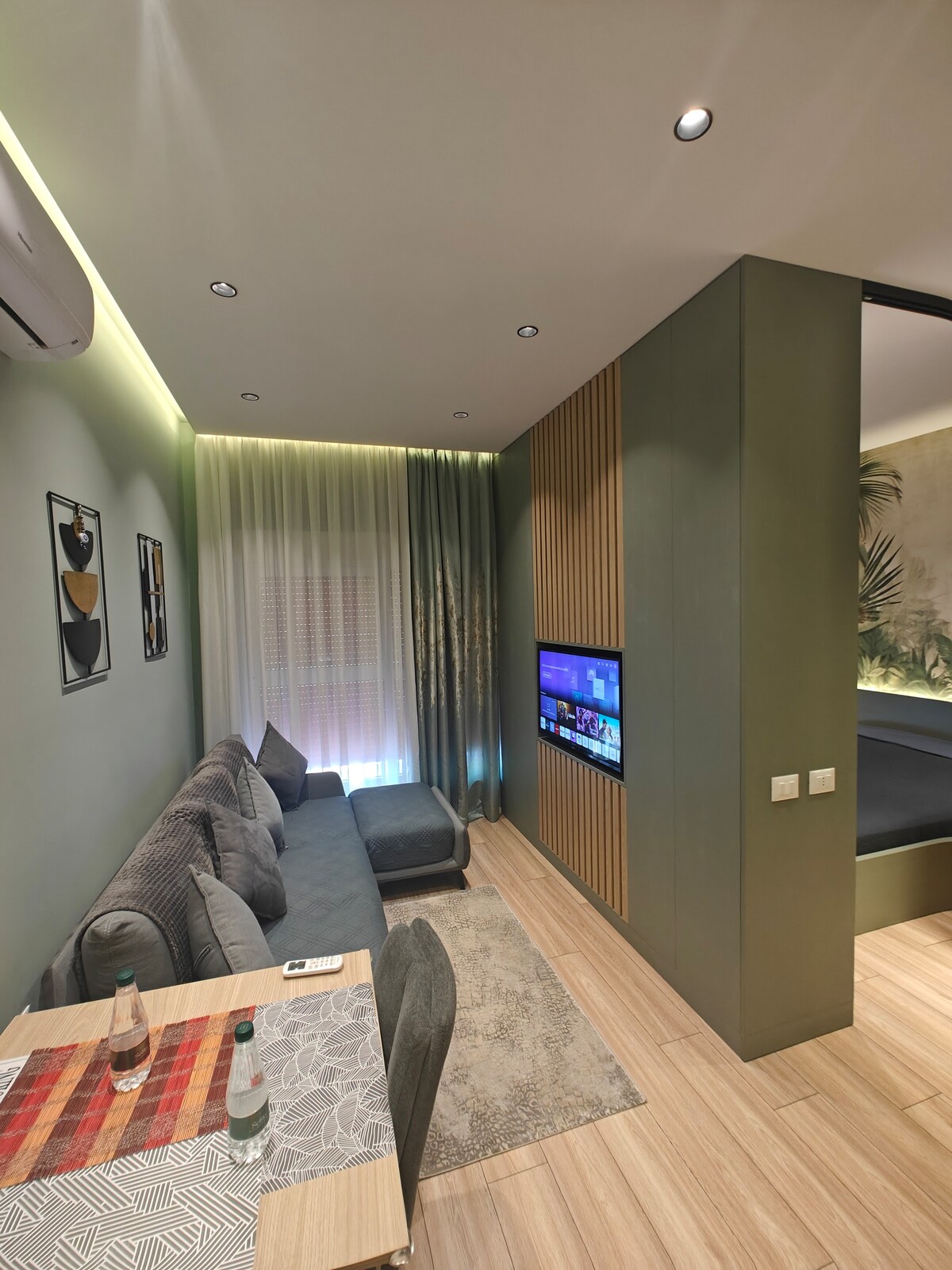 🏬 Location Kick back and relax in this peaceful retreat, where fresh mountain air and stunning views of mountain create the perfect escape. Located aproximately 2.5 km from Tirana’s vibrant city center, the apartment offers a quiet haven close to the action. 🚗 During your stay, an underground free parking lot will be dedicated. 🚌 Transport The nearest bus stop is aproximately 600 meters away to reach the heart of the city. 🛒Shops Supermarket, bars and many more just a foot away.
