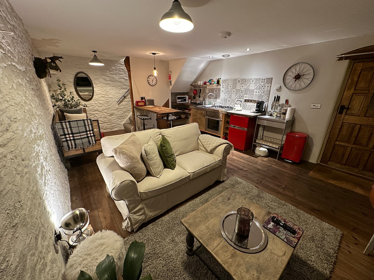 Un espacio tranquilo y profundamente lujoso para recargar energías y reconectar. The Shippon es un establo de vacas meticulosamente convertido con suelos de hormigón pulido y radiante, paredes de color verde oscuro suavemente curvadas, cocina hecha a mano, rincones de lectura cálidamente iluminados y materiales naturales. Mantas de lana, sofá de plumas, estufa de leña escandinava antigua, cama tamaño king con sábanas y edredón franceses, ducha de cascada y las toallas más suaves. Nuestra tranquila aldea de Devon solo está iluminada por las estrellas por la noche. Es posible que duermas mejor de lo que has dormido en años.