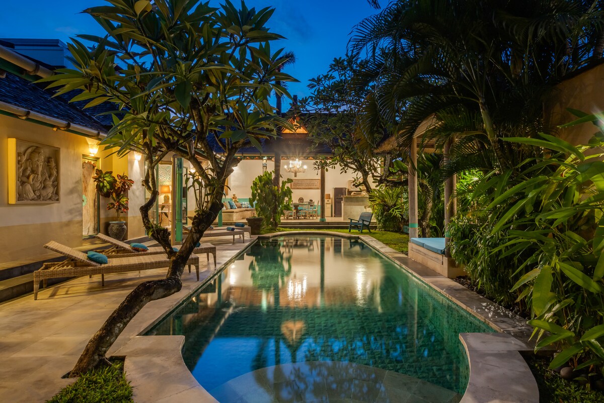 Esta villa aislada, extremadamente privada y romántica de un dormitorio está situada en una ubicación fantástica, cerca de los mejores restaurantes y clubes nocturnos y con fácil acceso a las playas y tiendas en el corazón de Seminyak. Se encuentra en uno de los mejores destinos para los turistas de la isla. Hay cafeterías y bares bulliciosos y concurridos y se trata de que esté en un lugar vibrante e increíble. Queremos informar a los huéspedes de un poco de ruido en los alrededores por la noche que generalmente termina a las 12:00 p. m.