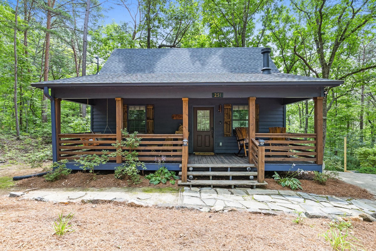Hammock + Pine es una acogedora cabaña que admite mascotas en Ellijay, GA. Despiértate con una impresionante vista a la montaña a través de los árboles, toma tu café de la mañana en el columpio del porche delantero, asa a la parrilla con la familia o reúnete alrededor de la hermosa chimenea de piedra para disfrutar de s'mores bajo las estrellas. La cabaña está ubicada en el corazón de una comunidad turística que ofrece algo para todos: estanques de pesca, lugares para hacer picnic, canchas de tenis y pickleball, piscinas, putt-putt, parques infantiles y más.