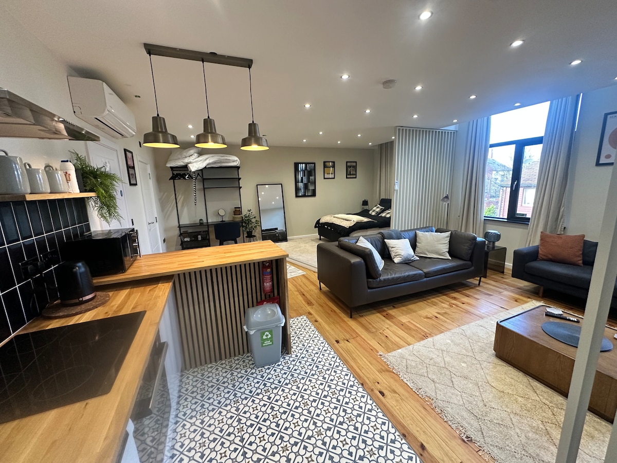 El estudio está en la ubicación perfecta para visitar la hermosa ciudad de Durham. Situado a solo unos minutos a pie de la estación de tren, la estación de autobuses y los restaurantes, tiendas y bares del centro de la ciudad. Tendrás tus propias entradas delanteras y traseras. En el interior encontrarás una cómoda cama tamaño king, ducha y aseo en suite y una pequeña cocina con microondas, nevera, tetera y cafetera, tostadora, sandwichera y una placa de cocción portátil de doble enchufe. Wifi, Sky TV Cine y Deportes.