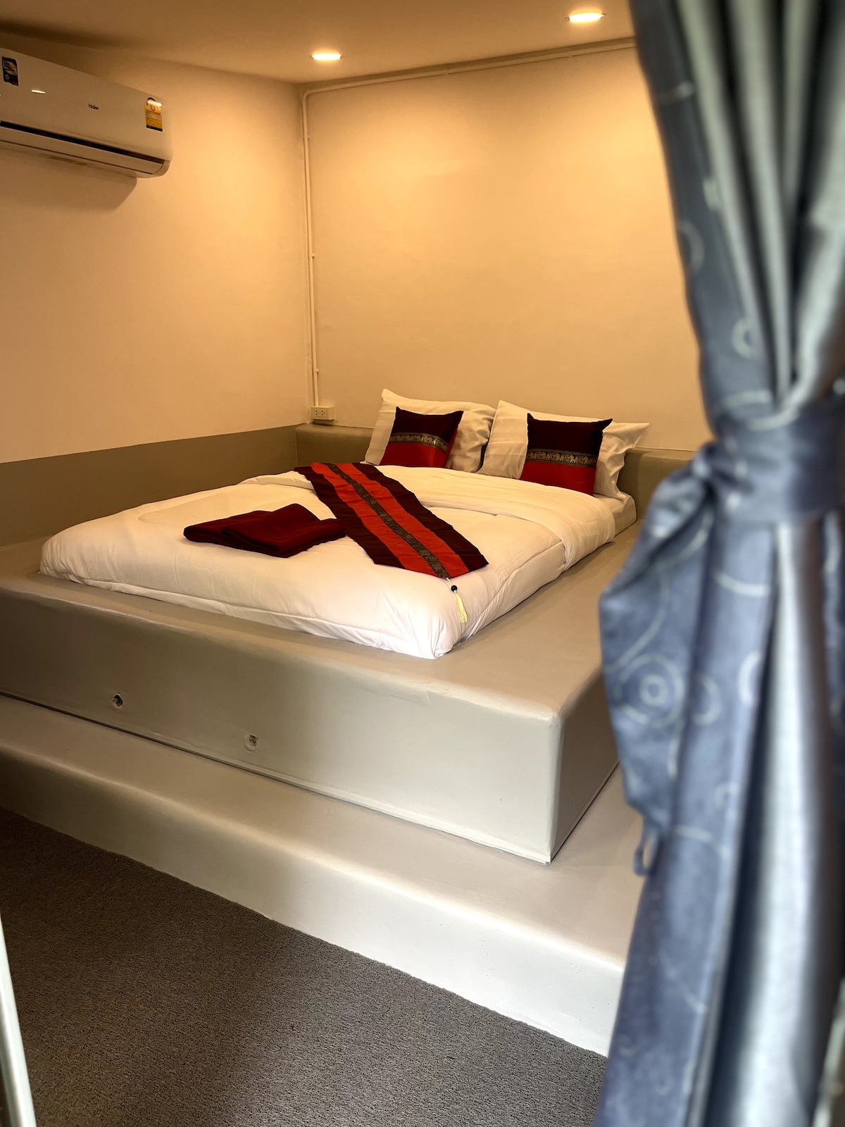 Una habitación pequeña y minimalista con calidez barata, cerca del muelle, cerca de la playa Sai Kaew, cerca de 7-Eleven y servicios. Se proporcionan bebidas gratuitas en la tienda para tu estancia.