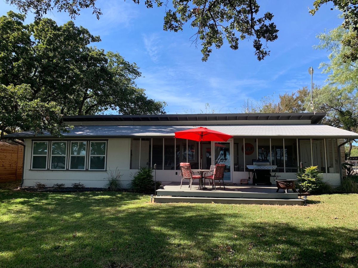 Responde a la llamada de la campiña de Texas con este elegante y renovado contenedor de envío como destino de próxima escapada. Sumérgete en el pintoresco paisaje, relájate en el balcón o contempla las estrellas alrededor del fogón. Con su acogedora chimenea y su acogedora terraza comedor al aire libre con una parrilla de gas, este refugio es perfecto para noches tranquilas después de explorar el Parque Estatal Lake Mineral Wells. Descubre la verdadera esencia de la relajación en este idílico alquiler vacacional de 1 dormitorio y 1 baño.