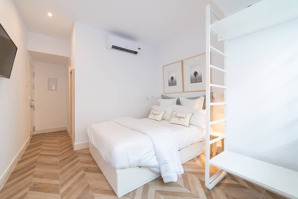 Habitaciones acogedoras, luminosas y cómodas con grandes ventanales a la calle. Estas habitaciones están equipadas con TV plana, escritorio, armario, muebles seleccionados, colchón de alto perfil y una espaciosa ducha de lluvia. Habitación de 19 m2 con una cama tamaño king (1,80m) o dos camas individuales (0,90m).