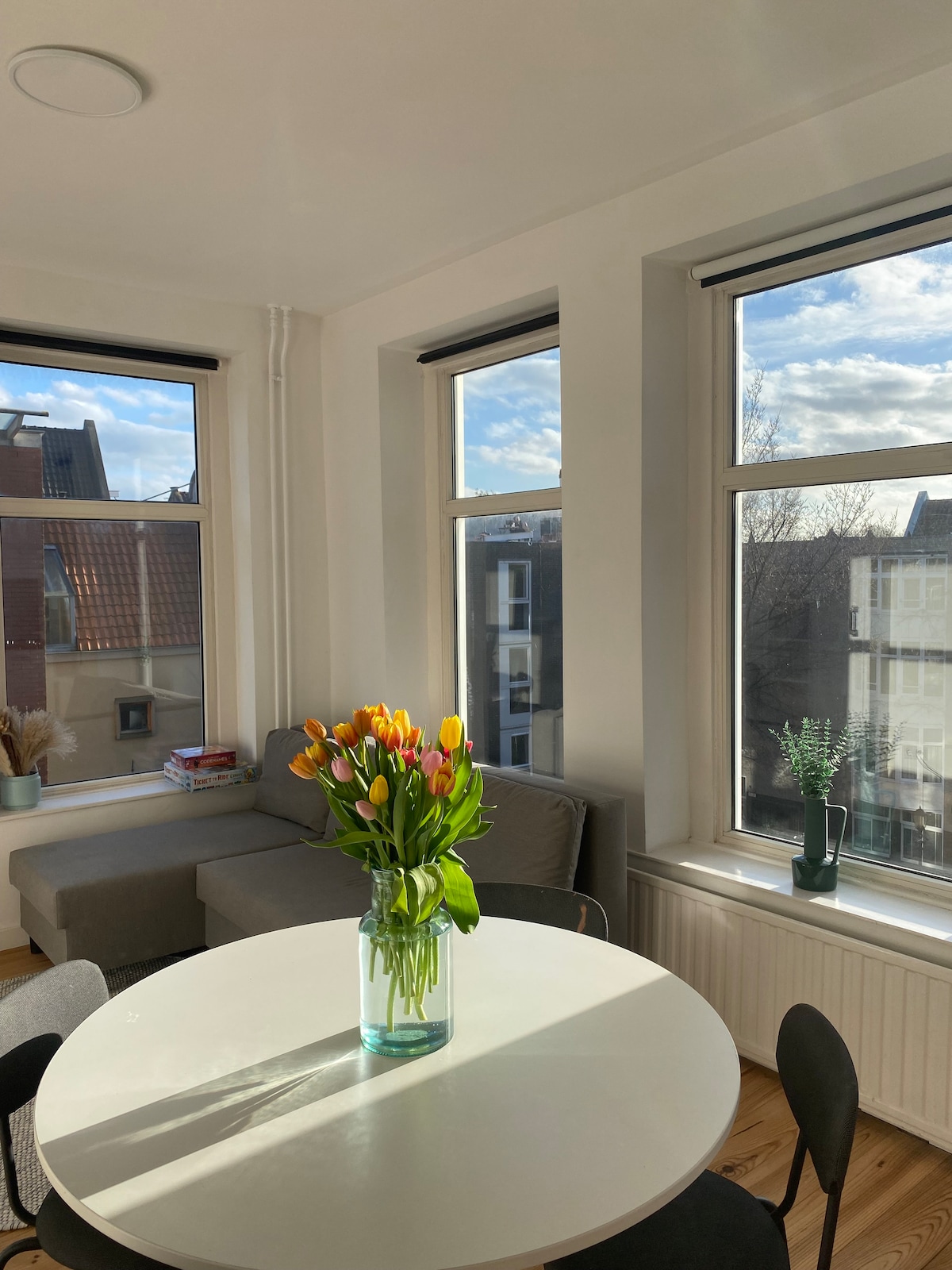 Disfruta de una verdadera experiencia en Ámsterdam en el corazón del Jordaan. Este apartamento de esquina bañado por el sol de 38 m2 está cerca de la acción, pero en una calle tranquila donde te sientes a un mundo de distancia del bullicioso centro. A solo 400 metros a pie de la casa de Ana Frank y los canales históricos, a 15 minutos a pie de la plaza Dam y a pocos metros de bares y restaurantes fantásticos. Con un dormitorio doble de buen tamaño y un baño grande que están separados del espacio abierto, esta casa es ideal para estancias largas o cortas.