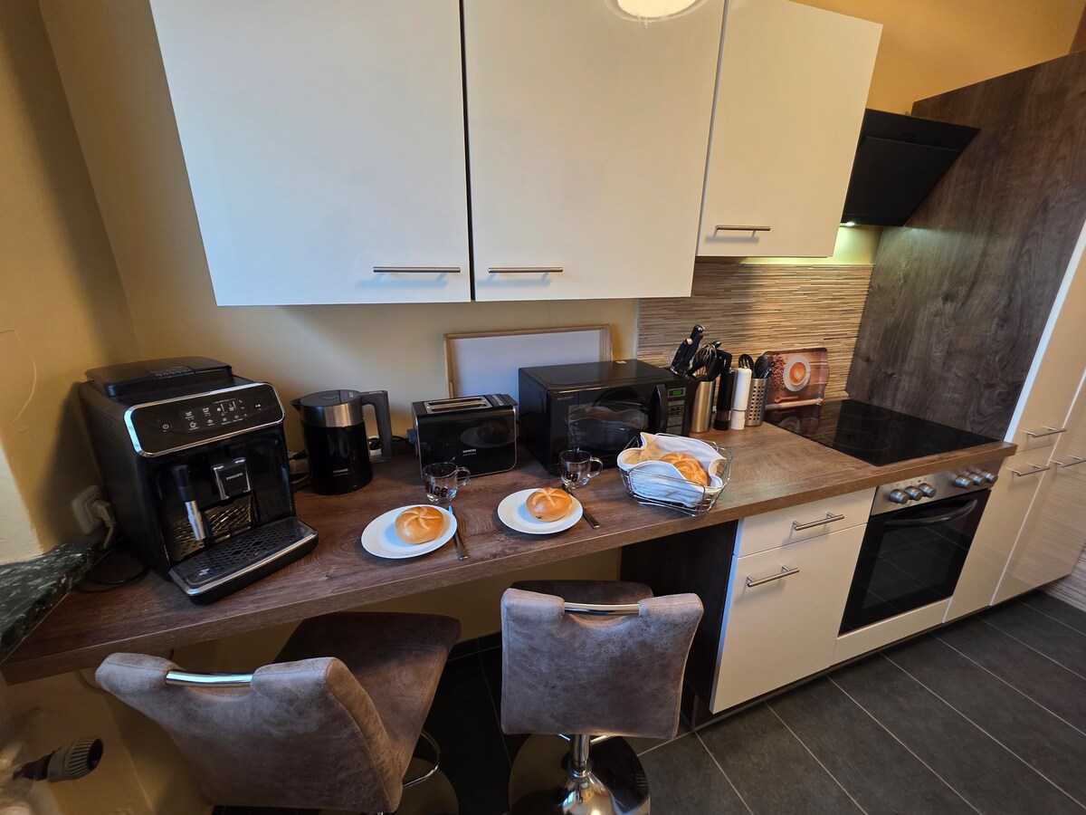¡Bienvenido a MalliBase Apartments en Kassel! Perfecto para parejas, amigos o familias que quieran explorar la ciudad. Relájate en el balcón, utiliza el aparcamiento privado y el supermercado de enfrente. El diseño moderno, una cocina totalmente equipada y una acogedora sala de estar ofrecen comodidad. Un televisor inteligente con Netflix, YouTube y mucho más garantiza que no te aburras. ¡Vive Kassel como un habitante más y disfruta de tu estancia en nuestro elegante hogar!