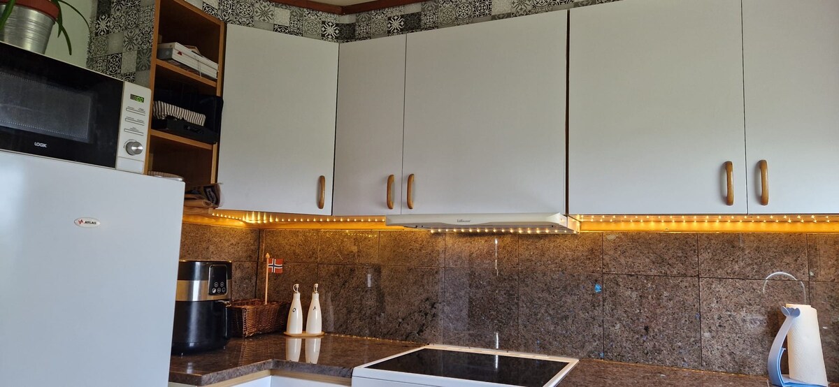 Trae a toda la familia a este gran lugar con un montón de espacio para divertirse. No muy lejos del nuevo centro de deportes de motor de Noruega "Kroheia". La casa está a 1 km de Nesvåghålo. Tienda de comestibles Kiwi y Coop Extra en el centro de la ciudad de Hauge, a unos 8 km. El departamento está en la planta superior. El propietario vive en la planta principal.