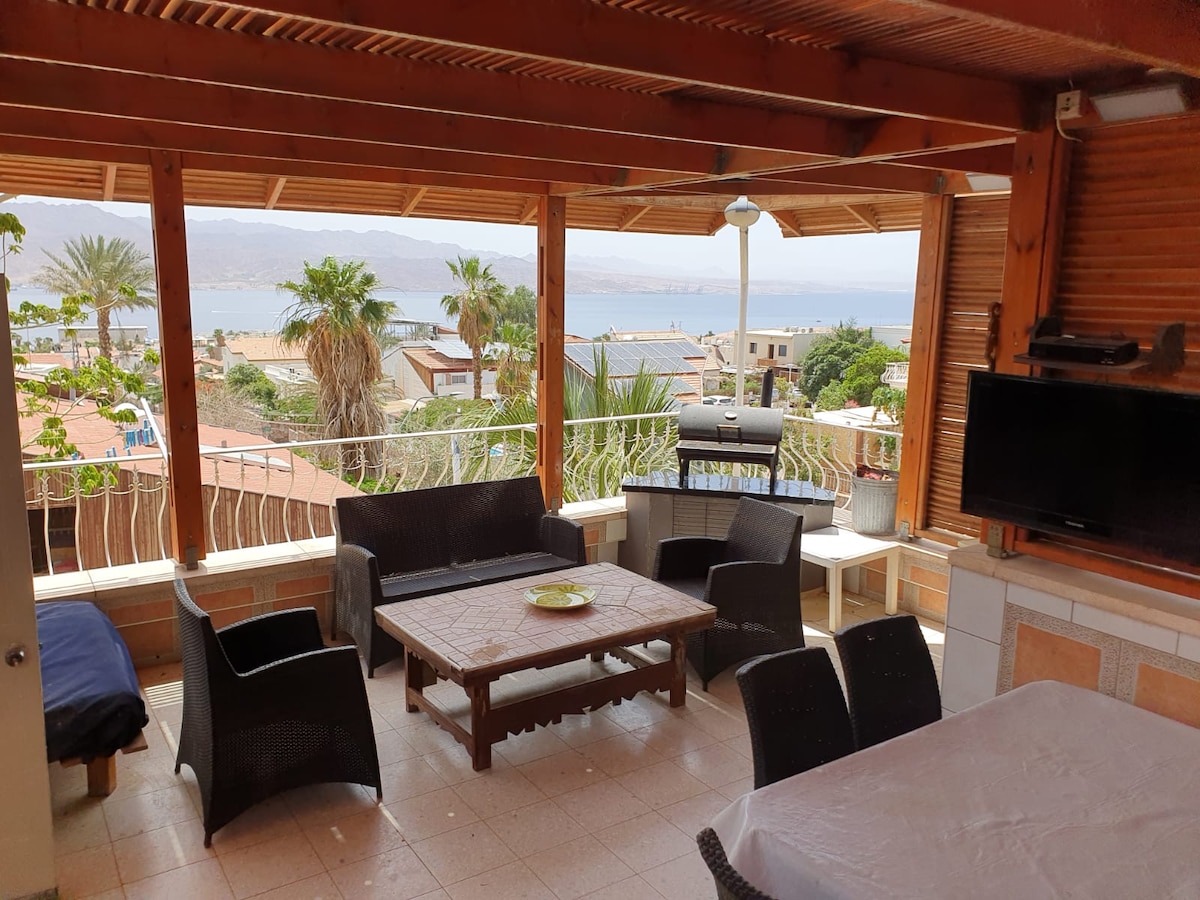 ¡Un apartamento de vacaciones de ensueño, impresionantes vistas al mar rojo, diseñado arquitectónico, totalmente equipado en el último detalle! Moderno, nuevo y elegante, con un hermoso balcón grande con impresionantes vistas al mar y las rocas rojas de la ciudad de Eilat. Puedes llegar al mar en 5 minutos en auto. El edificio está ubicado en el mejor barrio con acceso a un supermercado, cafetería, pizzería, panadería y barbería, al otro lado de la calle. Este es un edificio nuevo que incluye muebles nuevos para hacerte sentir cómodo. Un lugar tranquilo y relajante con acceso a un lugar de estacionamiento privado.