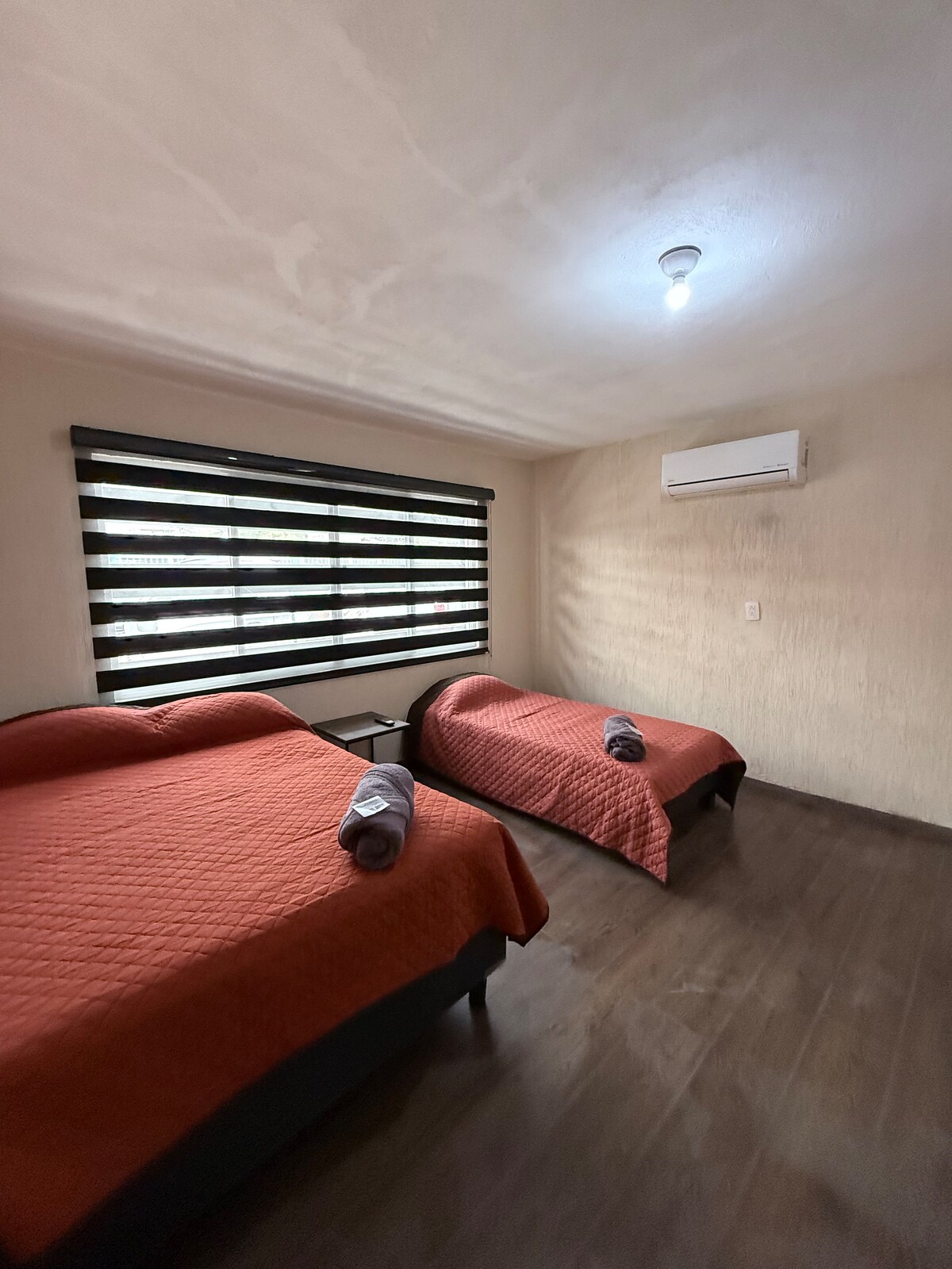 Mi casa es tu casa y por eso la hemos acondicionado para que disfrutes una cómoda estancia con la seguridad hospedarte en un alojamiento dentro de un fraccionamiento al sur de la ciudad. Excelente ubicación! Con acceso a vías primarias, a 3 minutos del periférico y a 5 minutos de centro comercial. Apta para 1 o varios huéspedes, por trabajo, o por el gusto (o la necesidad) de visitar Saltillo. La casa cuenta con ventiladores en cada habitación.